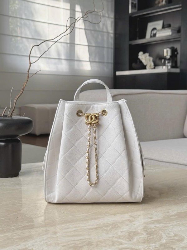 BACKPACK CHANEL 25 25B – SHEARLING SHEEPSKIN – WHITE – TĐ