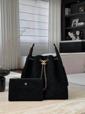 CHANEL 25 MEDIUM 25K – SUEDE CALFSKIN – BLACK – TĐ