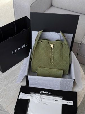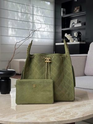CHANEL 25 MEDIUM 25K – SUEDE CALFSKIN – KHAKI – TĐ