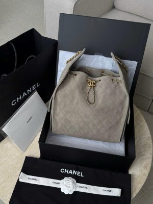CHANEL 25 MEDIUM 25K – SUEDE CALFSKIN – BROWN GREY – TĐ