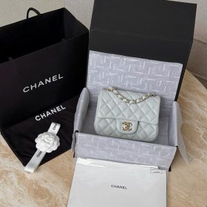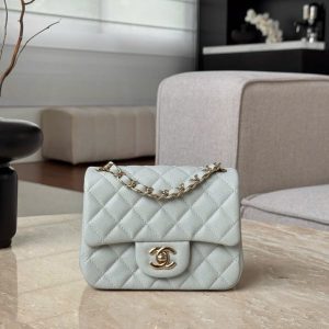 CHANEL CLASSIC MINI SQUARE – CAVIAR – GREY BLUE – TĐ