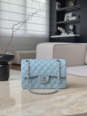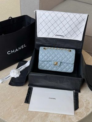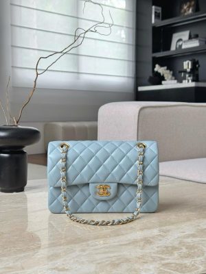 CHANEL CLASSIC SMALL – LAMBSKIN – LIGHT BLUE – TĐ