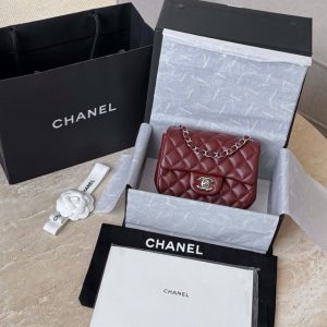 CHANEL CLASSIC MINI SQUARE – LAMBSKIN – JUJUBE RED – TĐ