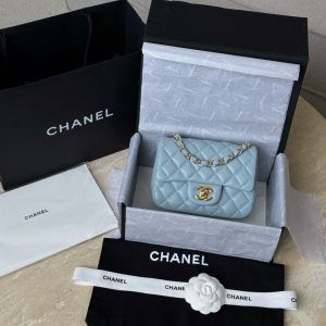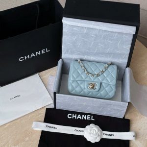 CHANEL CLASSIC MINI SQUARE – LAMBSKIN – LIGHT BLUE – TĐ