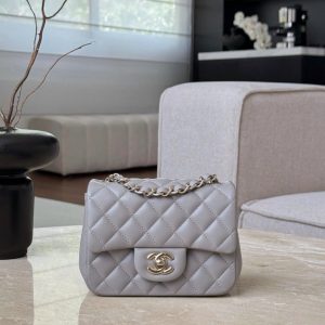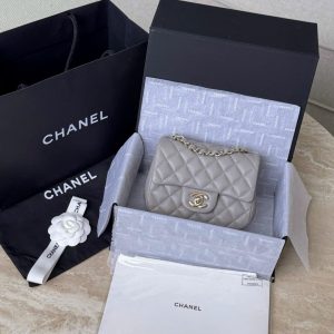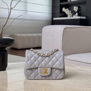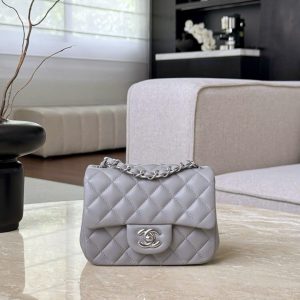 CHANEL CLASSIC MINI SQUARE – LAMBSKIN – LIGHT GREY – TĐ