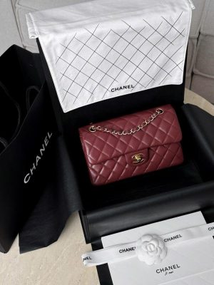 CHANEL CLASSIC SMALL – LAMBSKIN – WINE RED – TĐ
