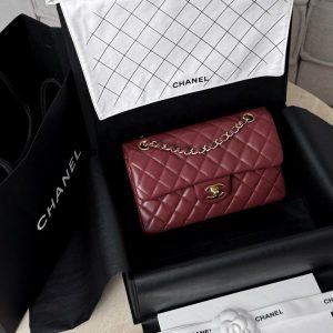 CHANEL CLASSIC SMALL – LAMBSKIN – WINE RED – TĐ
