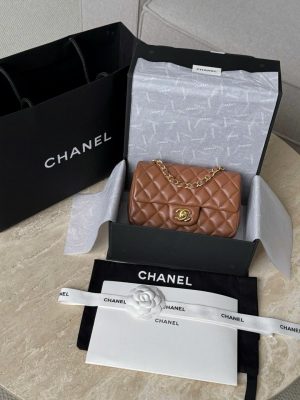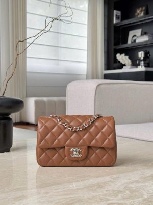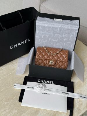 CHANEL CLASSIC MINI RECTANGULAR – LAMBSKIN – BRILLIANT BROWN – TĐ