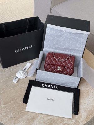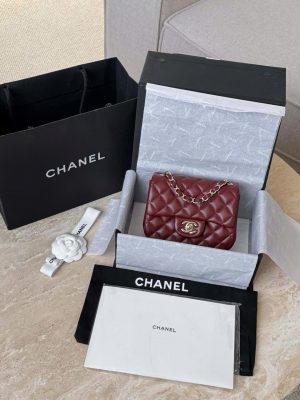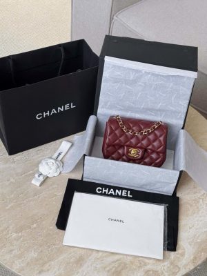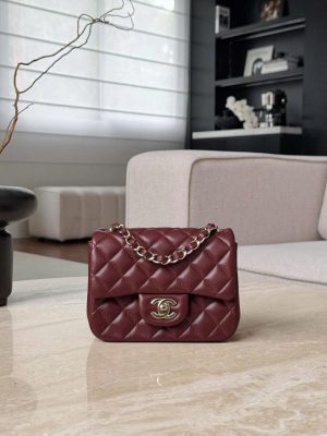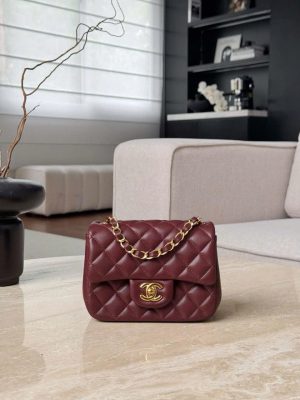 CHANEL CLASSIC MINI SQUARE – LAMBSKIN – JUJUBE RED – TĐ