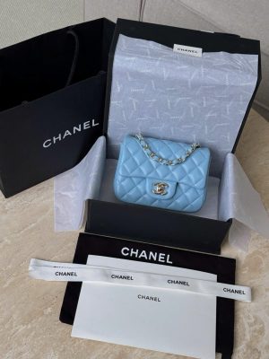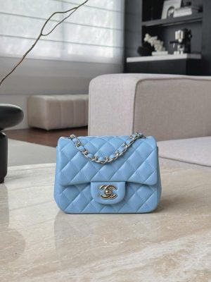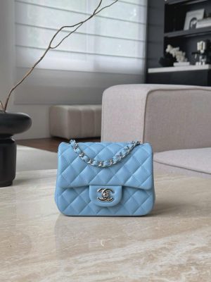CHANEL CLASSIC MINI SQUARE – LAMBSKIN – DENIM BLUE – TĐ