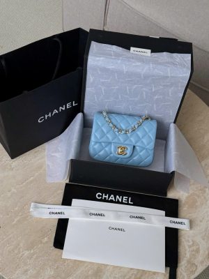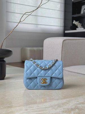 CHANEL CLASSIC MINI SQUARE – LAMBSKIN – COWBOY BLUE – TĐ