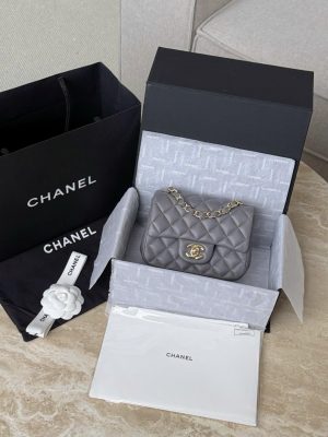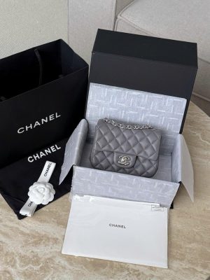 CHANEL CLASSIC MINI SQUARE – LAMBSKIN – DARK GREY – TĐ