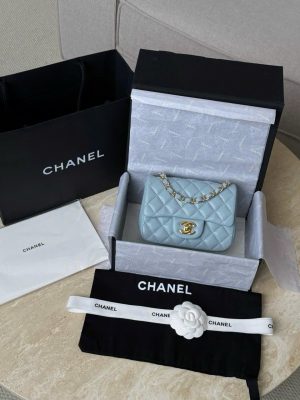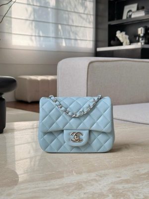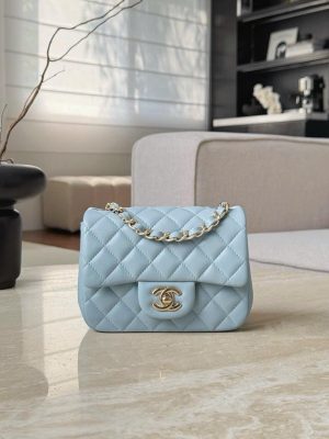 CHANEL CLASSIC MINI SQUARE – LAMBSKIN – LIGHT BLUE – TĐ