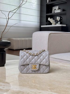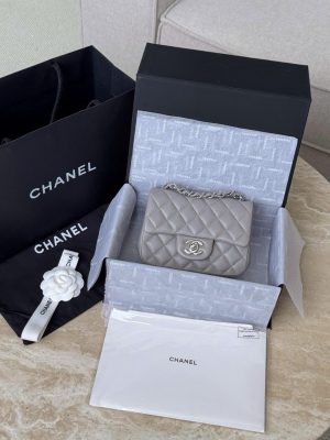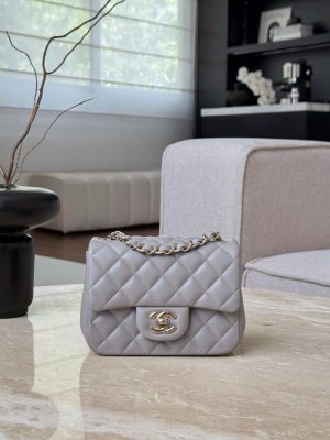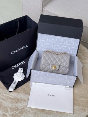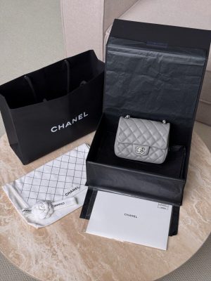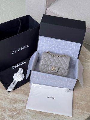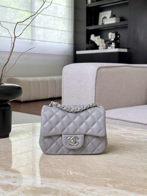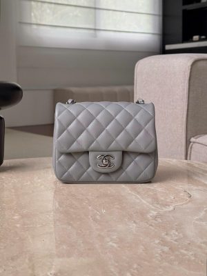 CHANEL CLASSIC MINI SQUARE – LAMBSKIN – LIGHT GREY – TĐ
