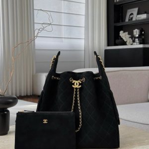 CHANEL 25 MEDIUM 25K – SUEDE CALFSKIN – BLACK – TĐ