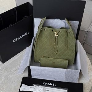CHANEL 25 MEDIUM 25K – SUEDE CALFSKIN – KHAKI – TĐ