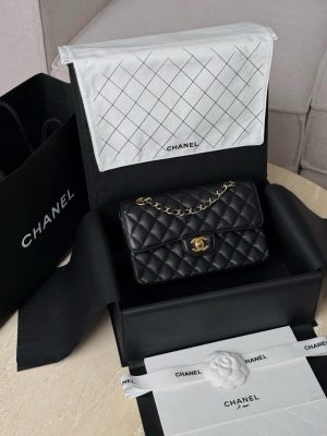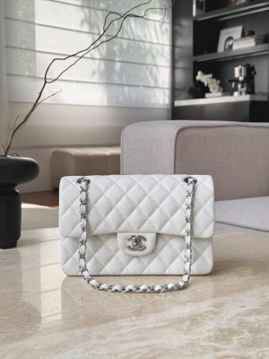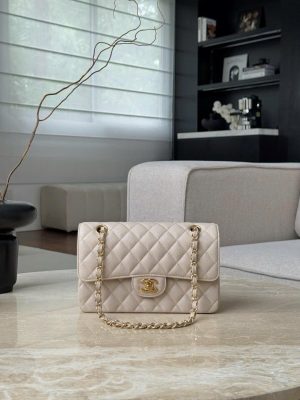CHANEL 25 MEDIUM 25B – CAVIAR – LIGHT GREY – TĐ