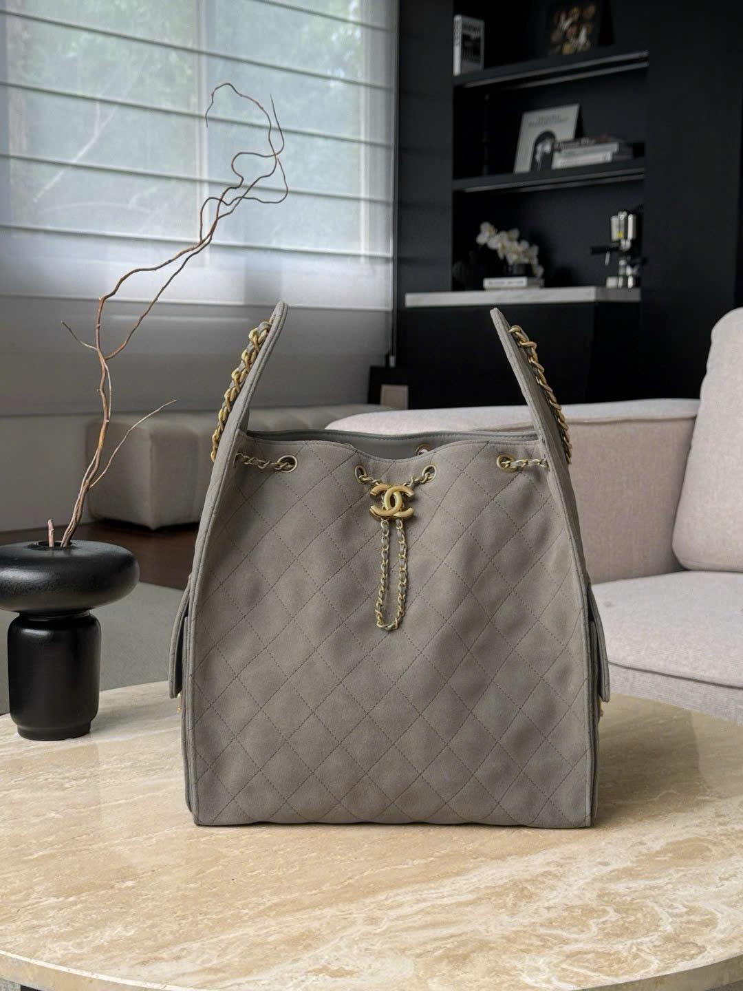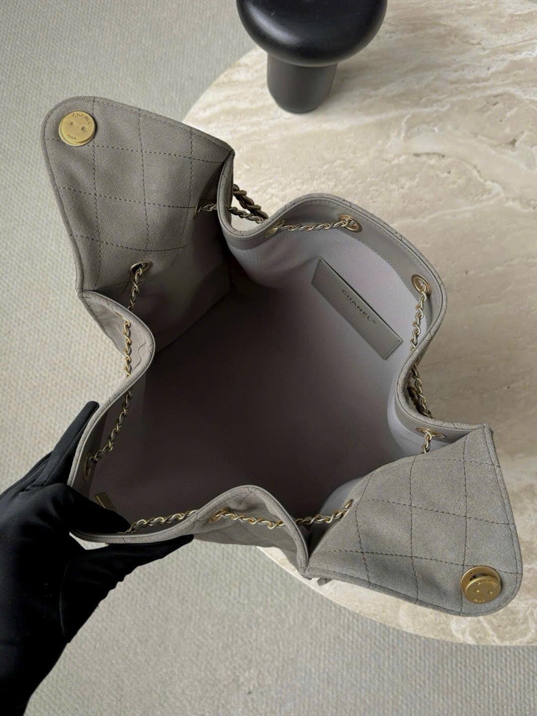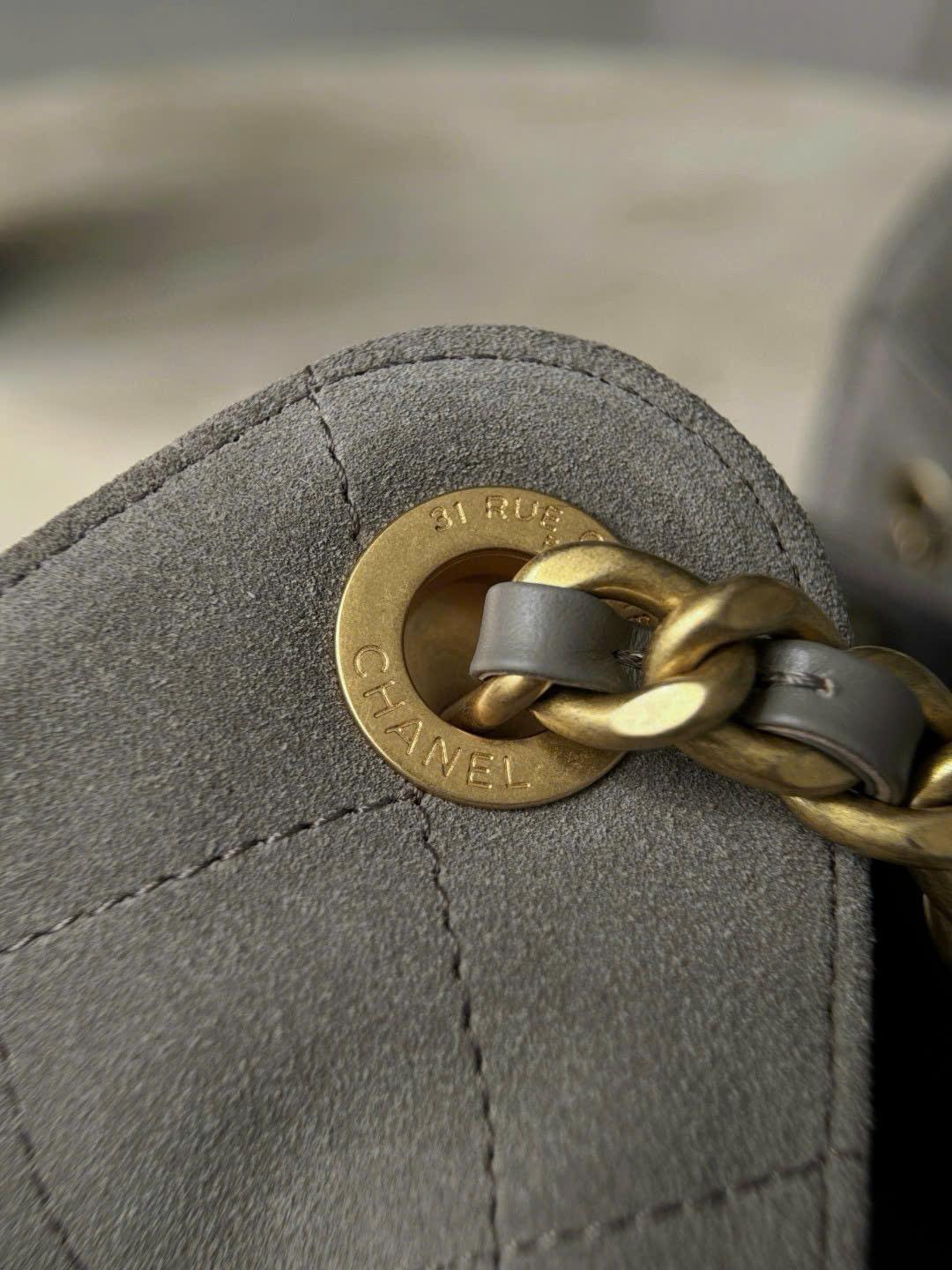 CHANEL 25 MEDIUM 25C – SUEDE CALFSKIN – DARK GREY – TĐ