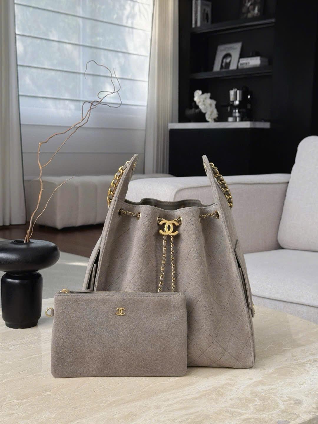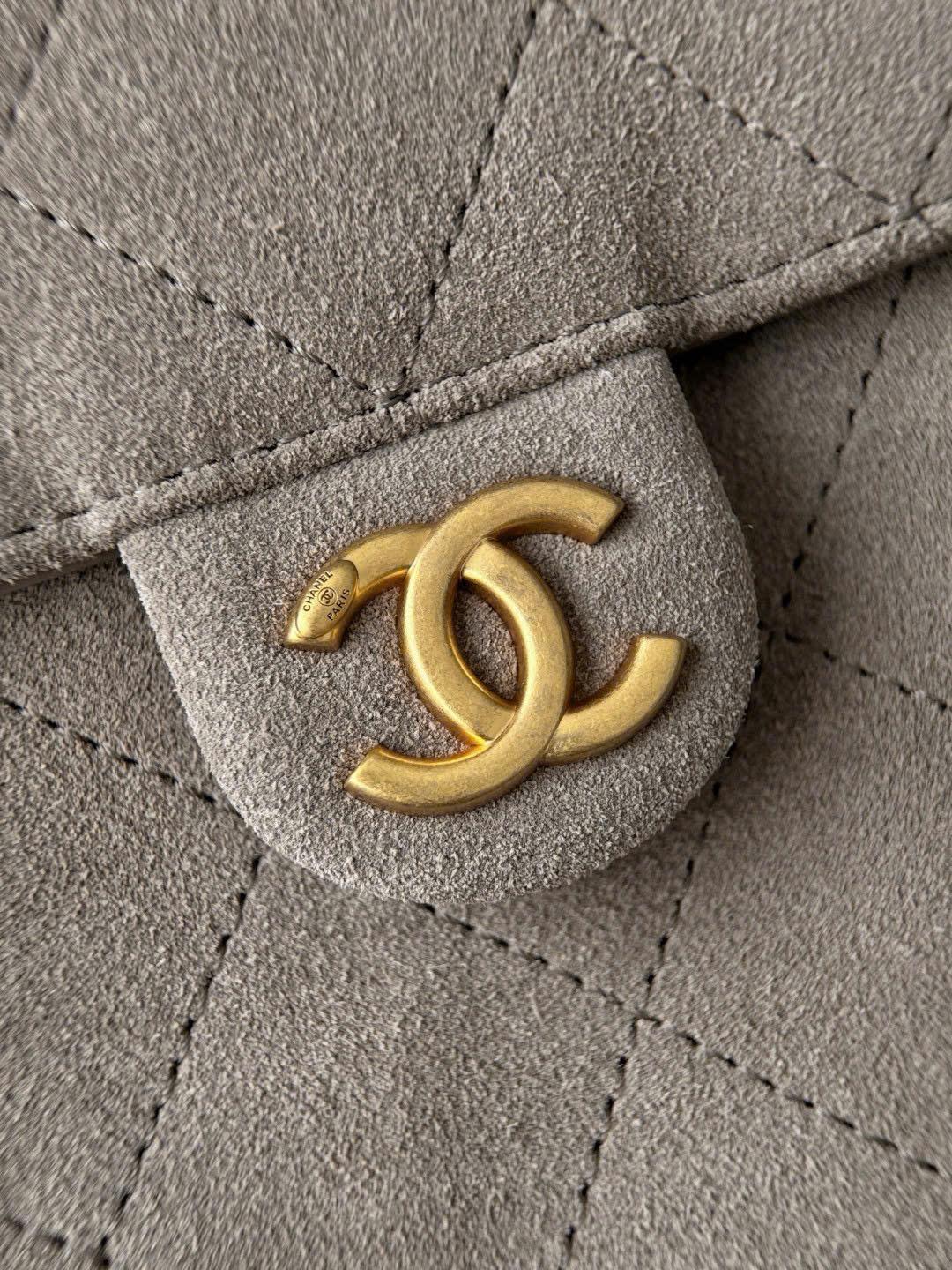CHANEL 25 MEDIUM 25K – SUEDE CALFSKIN – BROWN GREY – TĐ