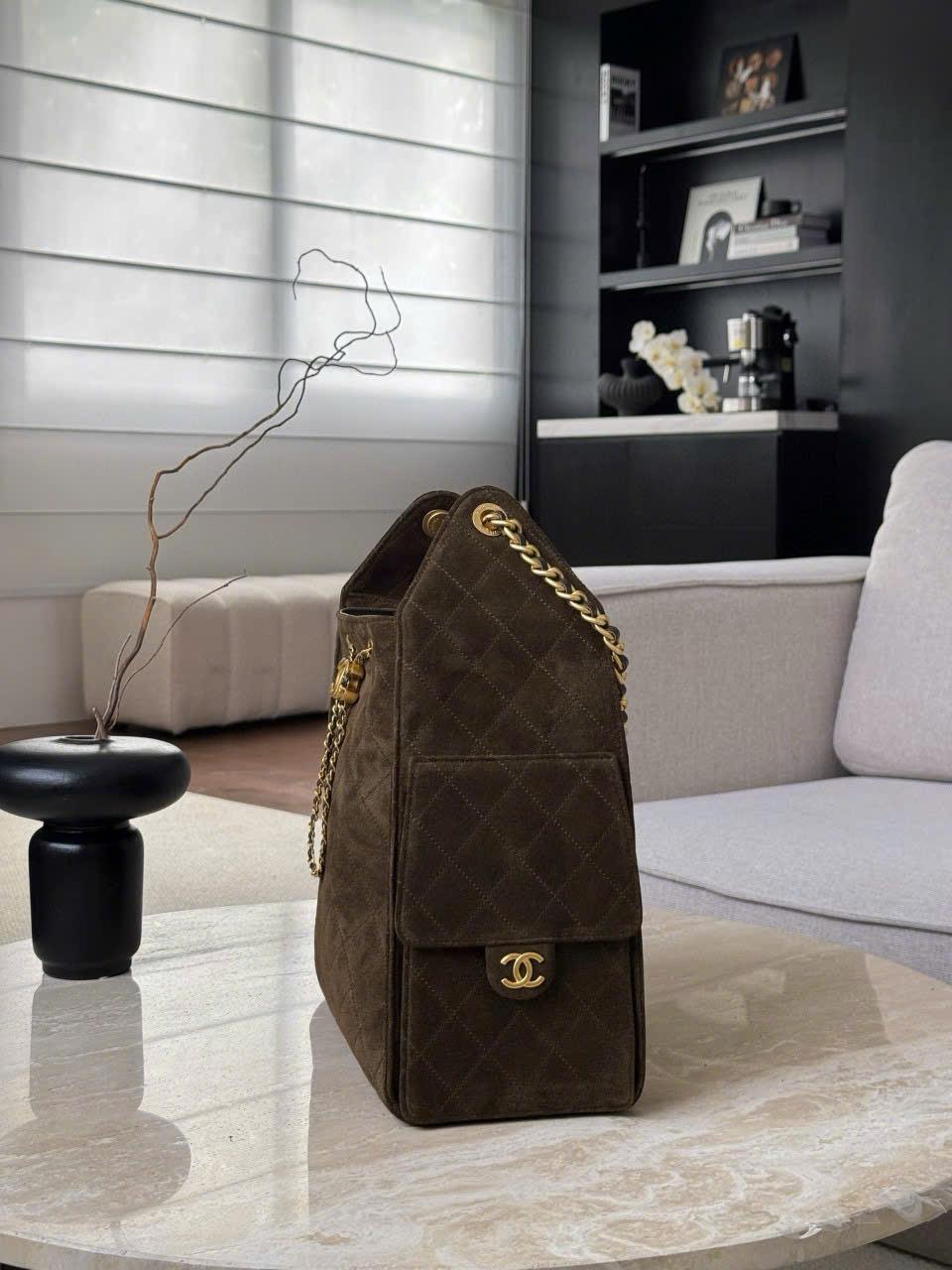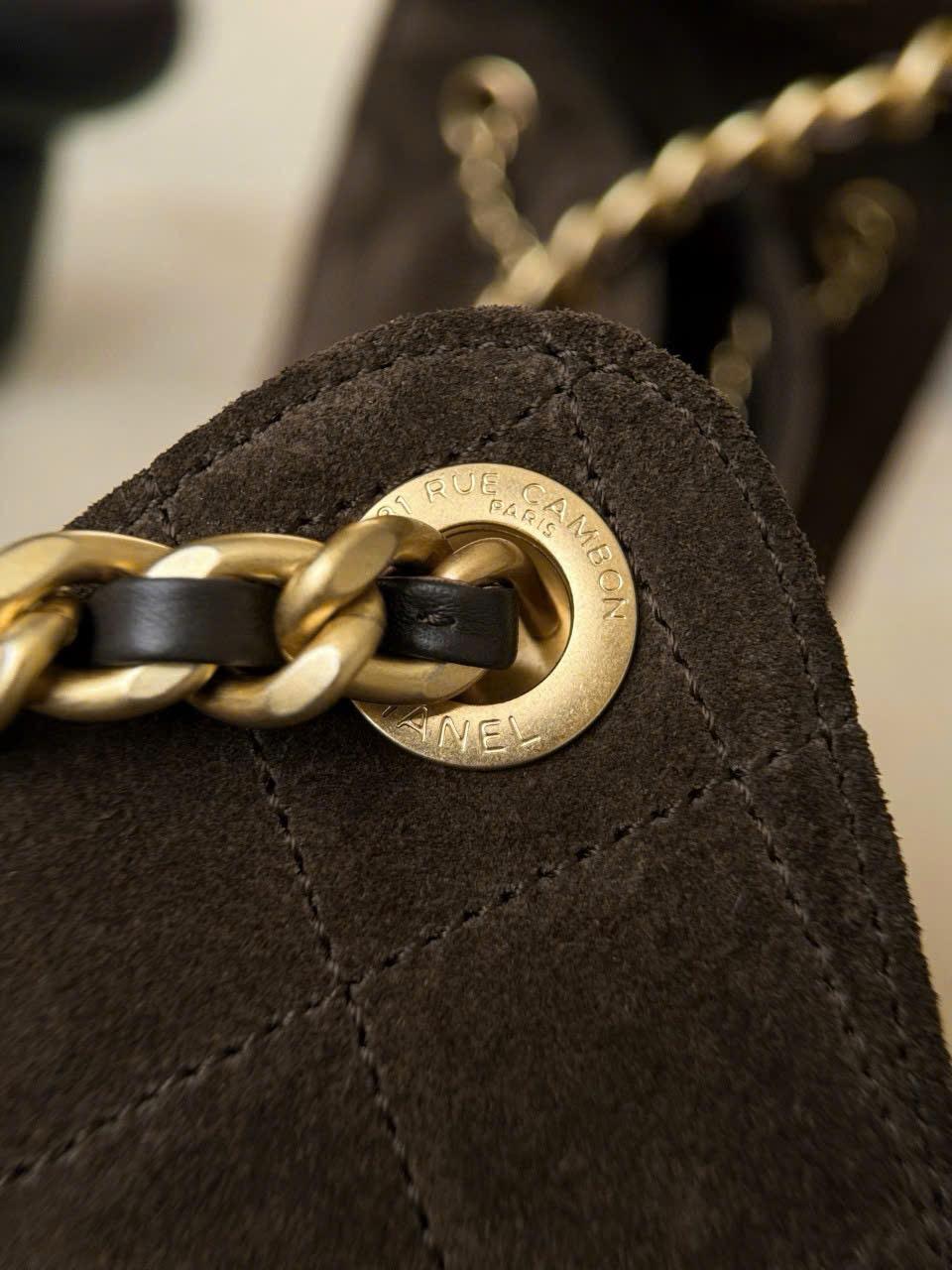 CHANEL 25 MEDIUM 25K – SUEDE CALFSKIN – DARK BROWN – TĐ