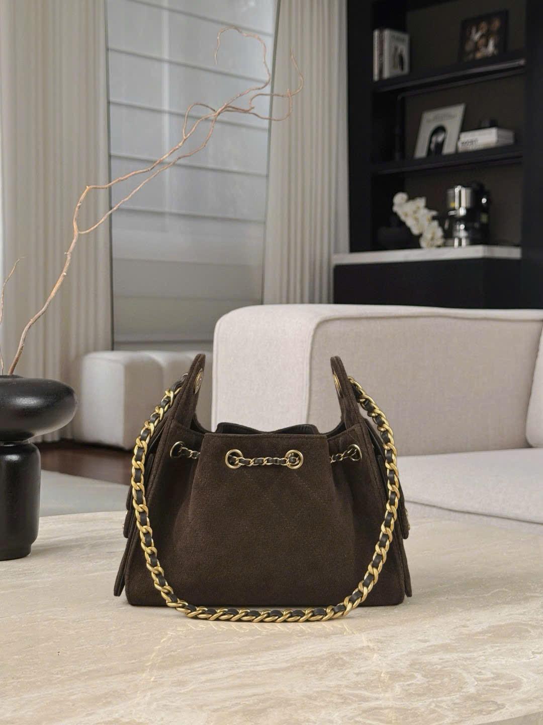 CHANEL 25 MINI – SUEDE CALFSKIN – DARK BROWN – TĐ