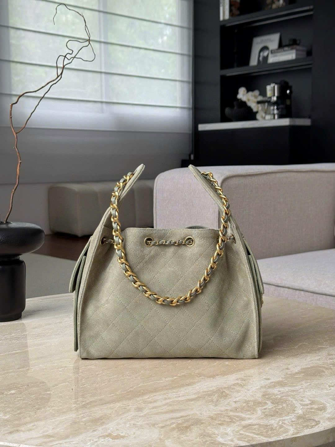 CHANEL 25 SMALL 25C – SUEDE CALFSKIN – KHAKI – TĐ