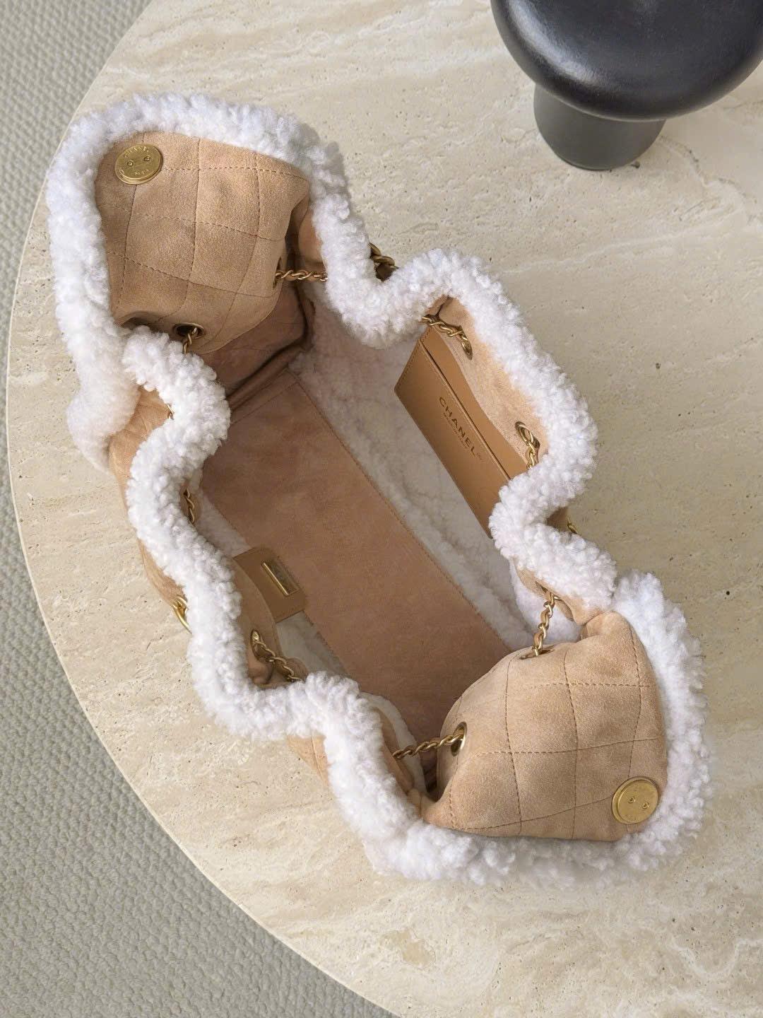 CHANEL 25 SMALL 25K – SHEARLING SHEEPSKIN – BEIGE & WHITE – TĐ