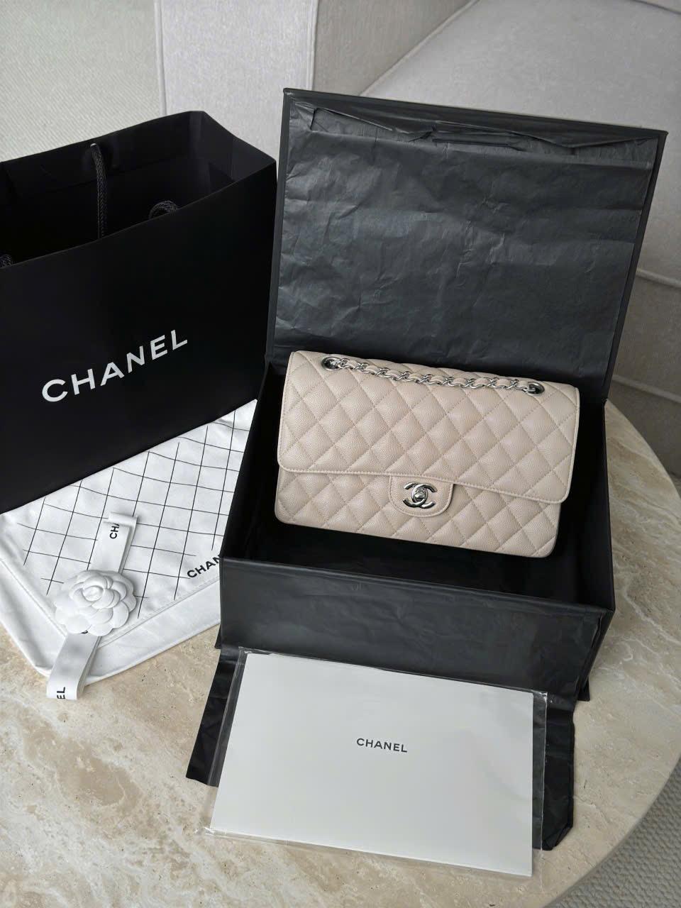 CHANEL CLASSIC MEDIUM – CAVIAR – LIGHT BEIGE – TĐ