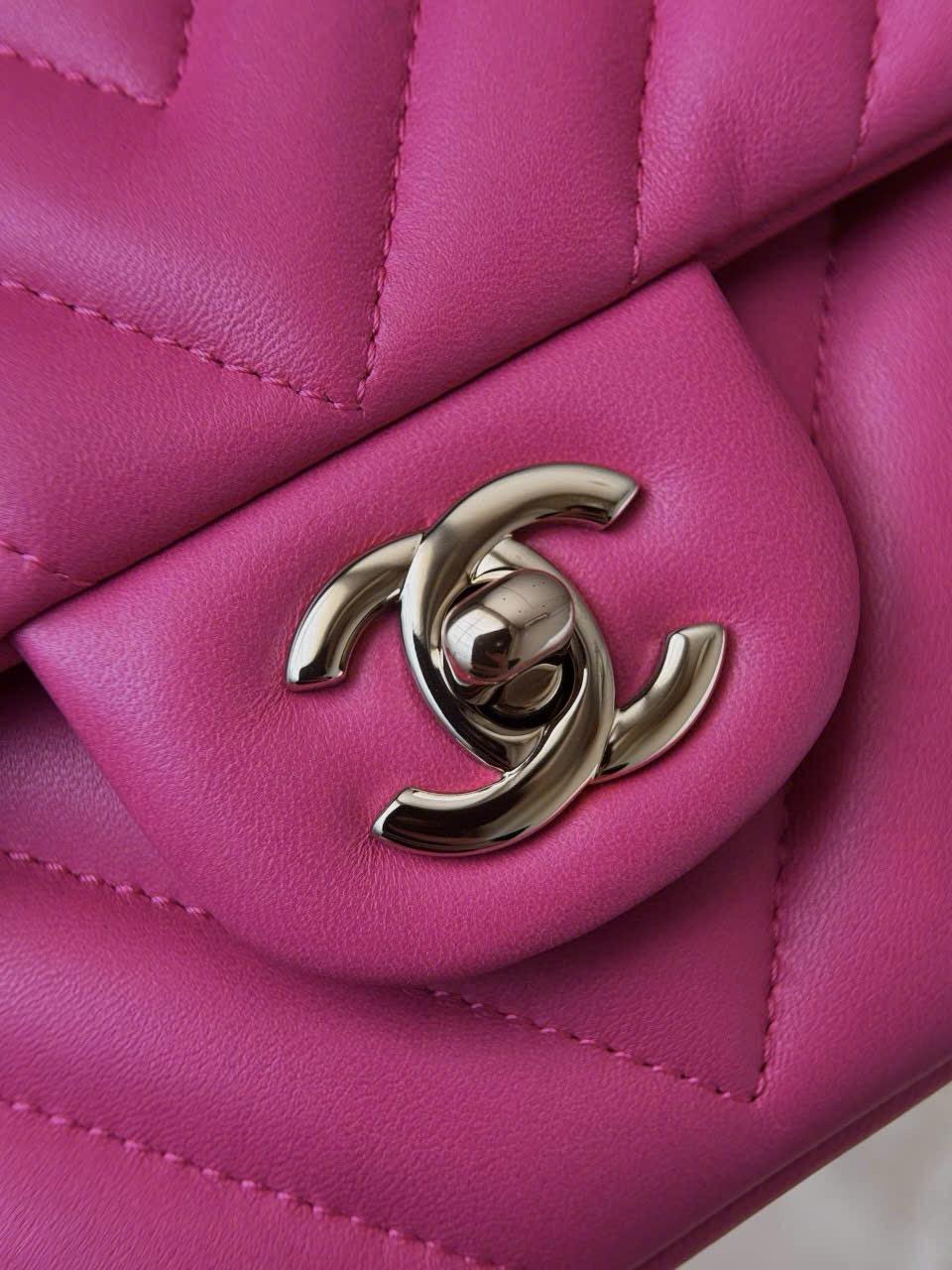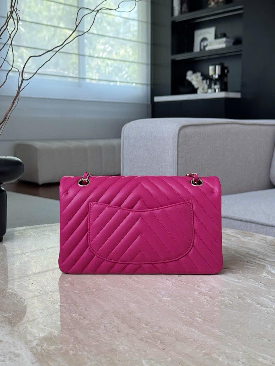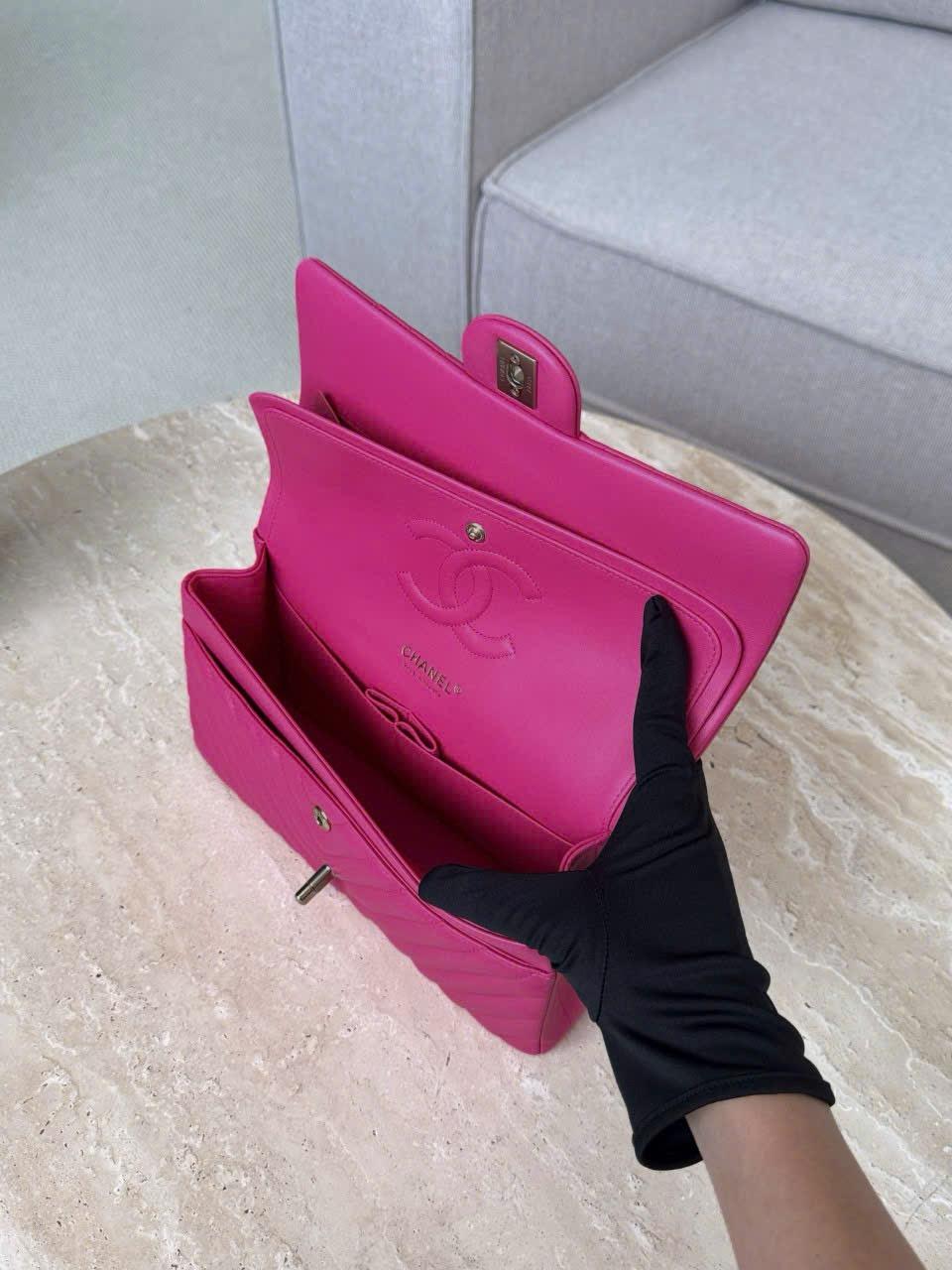 CHANEL CLASSIC MEDIUM – LAMBSKIN – CHERVON ROSE RED – TĐ