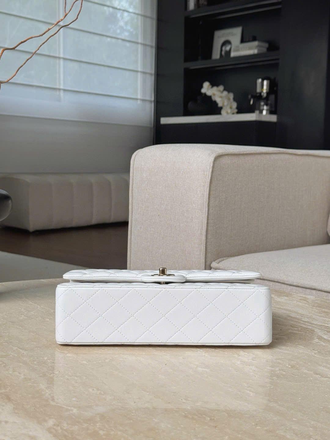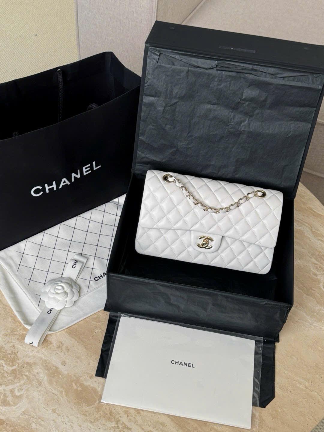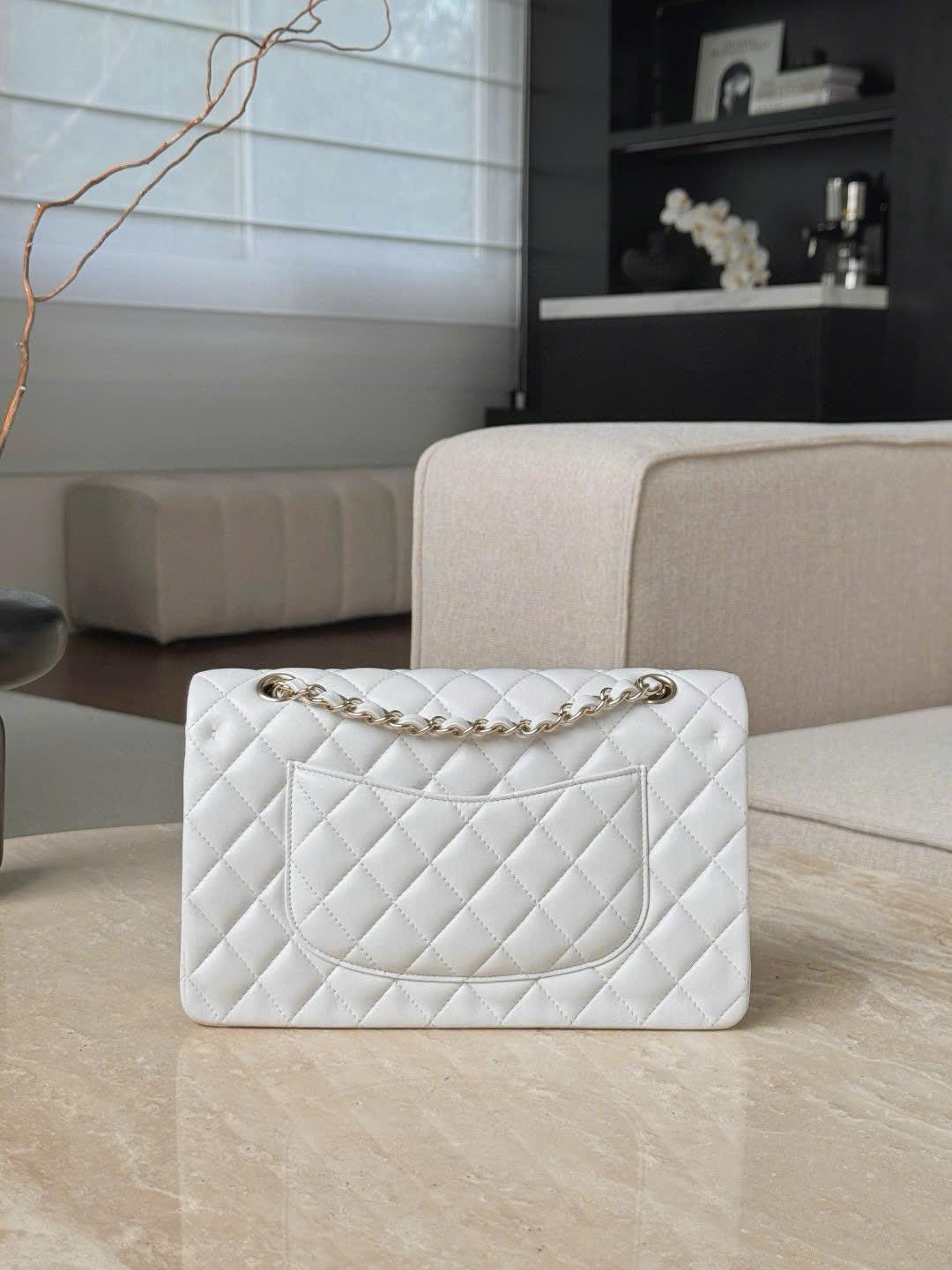 CHANEL CLASSIC MEDIUM – LAMBSKIN – WHITE – TĐ