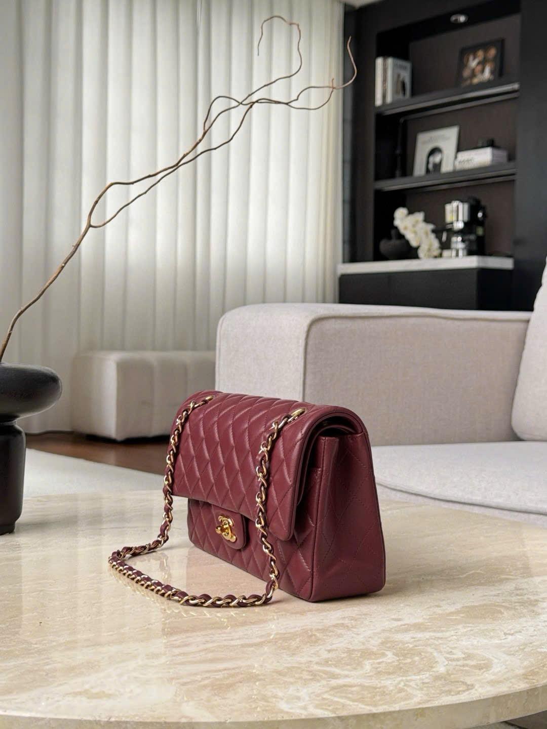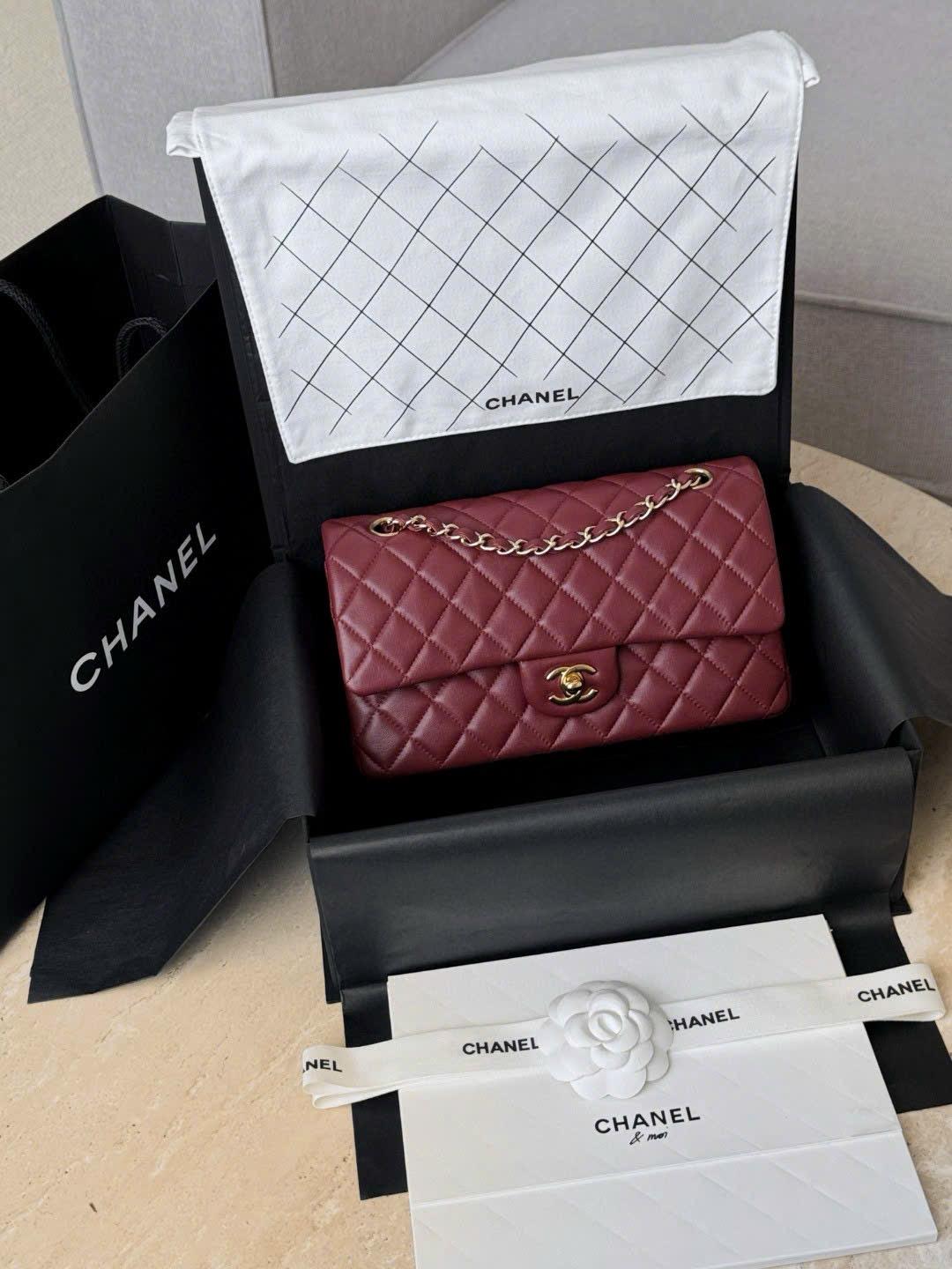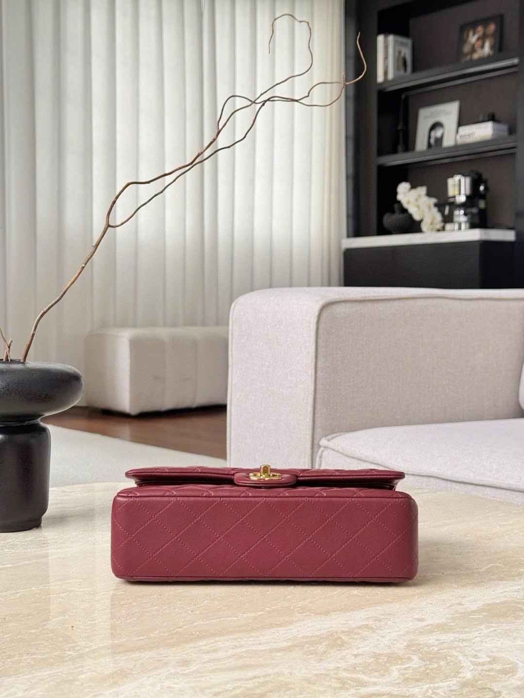 CHANEL CLASSIC MEDIUM – LAMBSKIN – WINE RED – TĐ