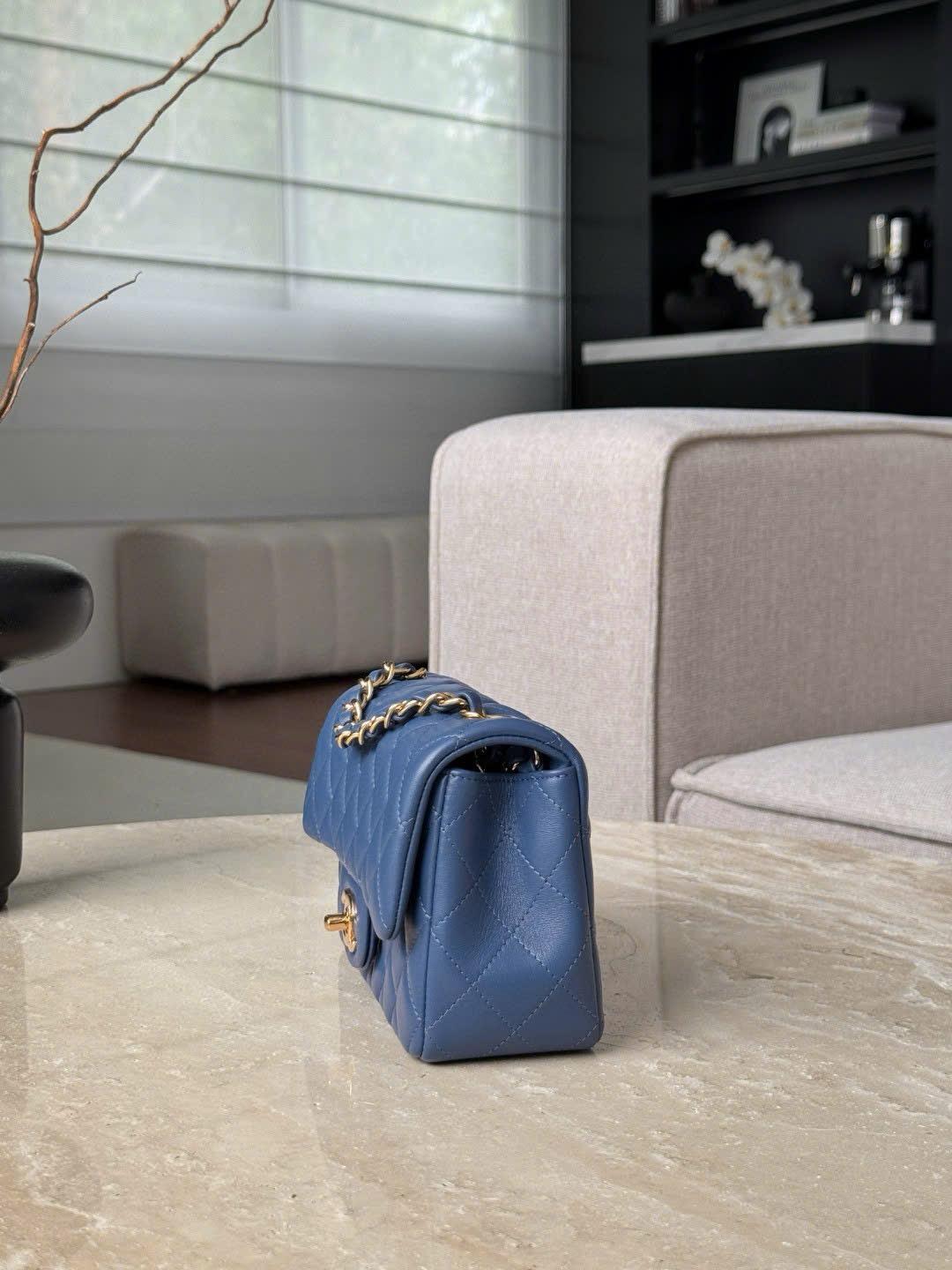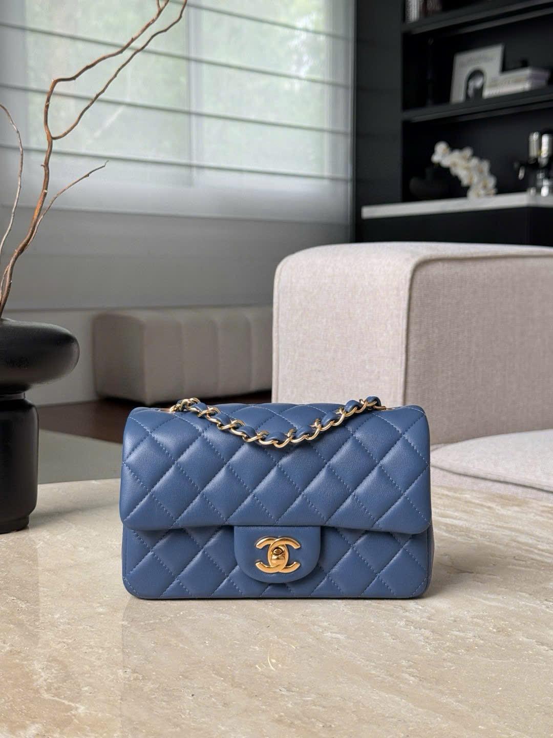 CHANEL CLASSIC MINI RECTANGULAR – LAMBSKIN – HAZE BLUE – TĐ