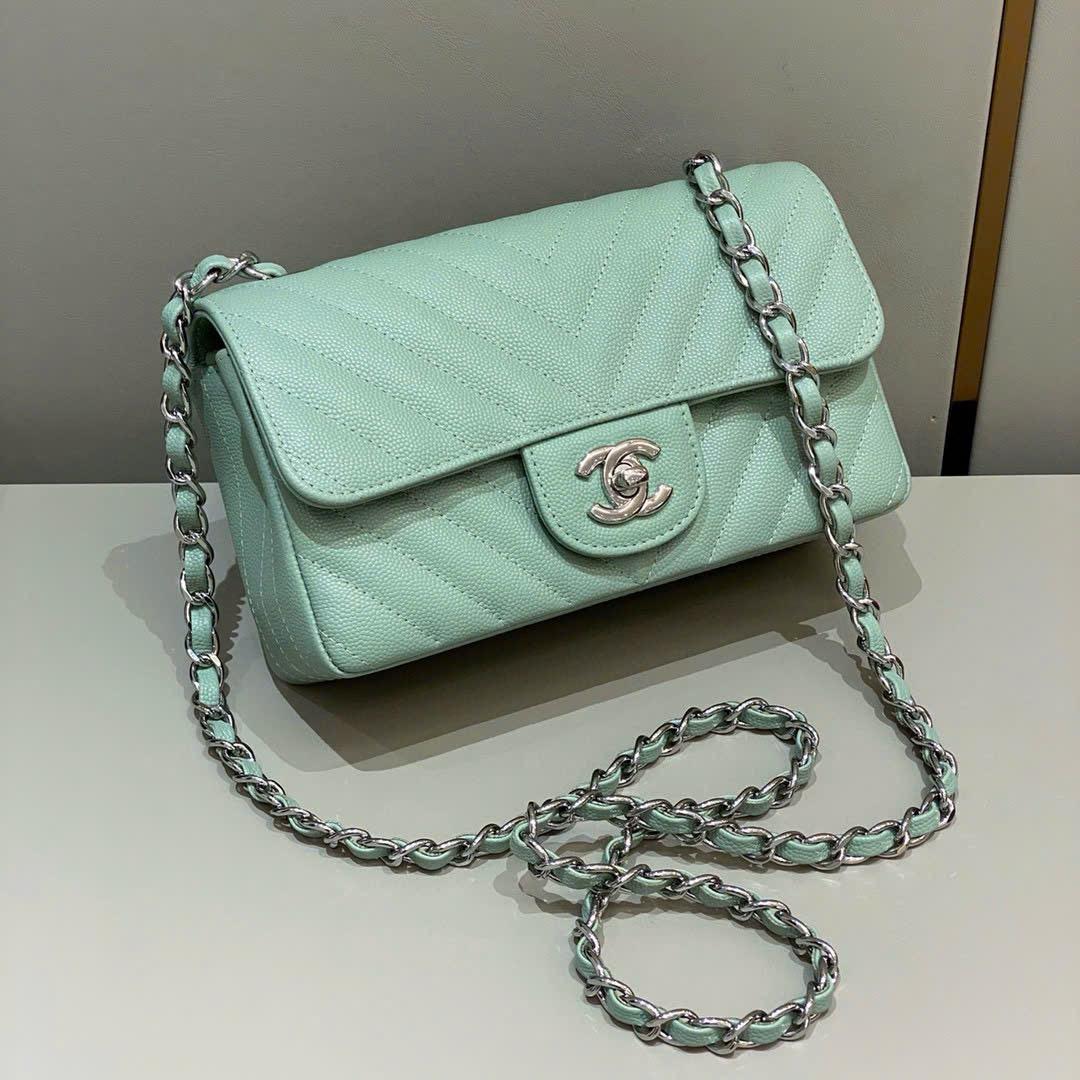 CHANEL CLASSIC MINI RECTANGULAR CHEVRON- CAVIAR – MATCHA GREEN – TĐ