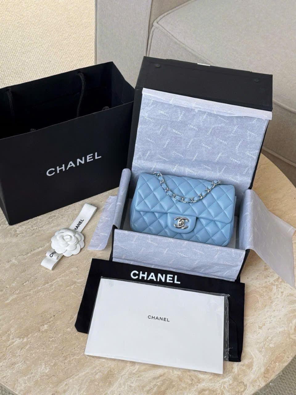 CHANEL CLASSIC MINI RECTANGULAR – LAMBSKIN – COWBOY BLUE – TĐ