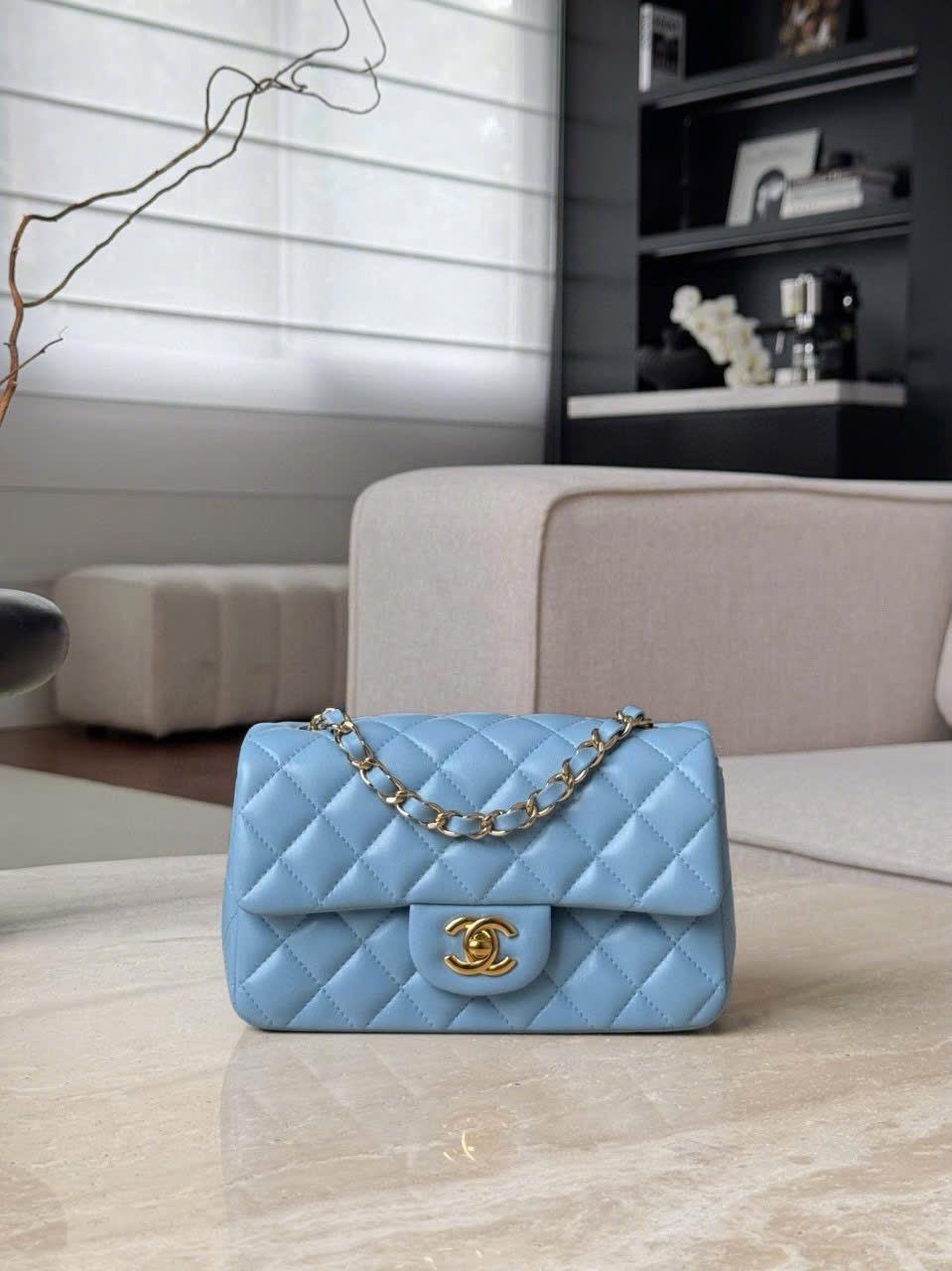 CHANEL CLASSIC MINI RECTANGULAR – LAMBSKIN – DENIM BLUE – TĐ