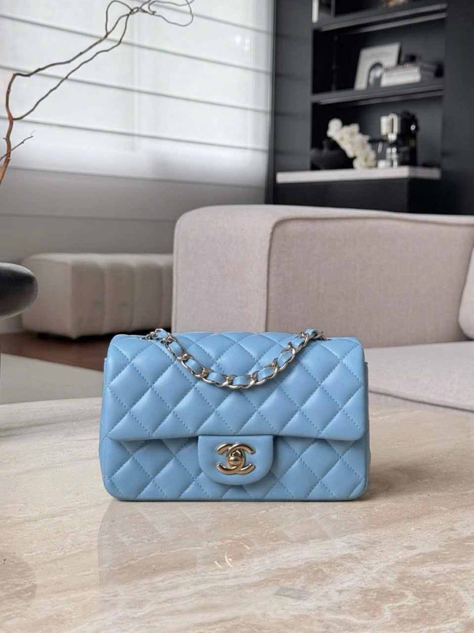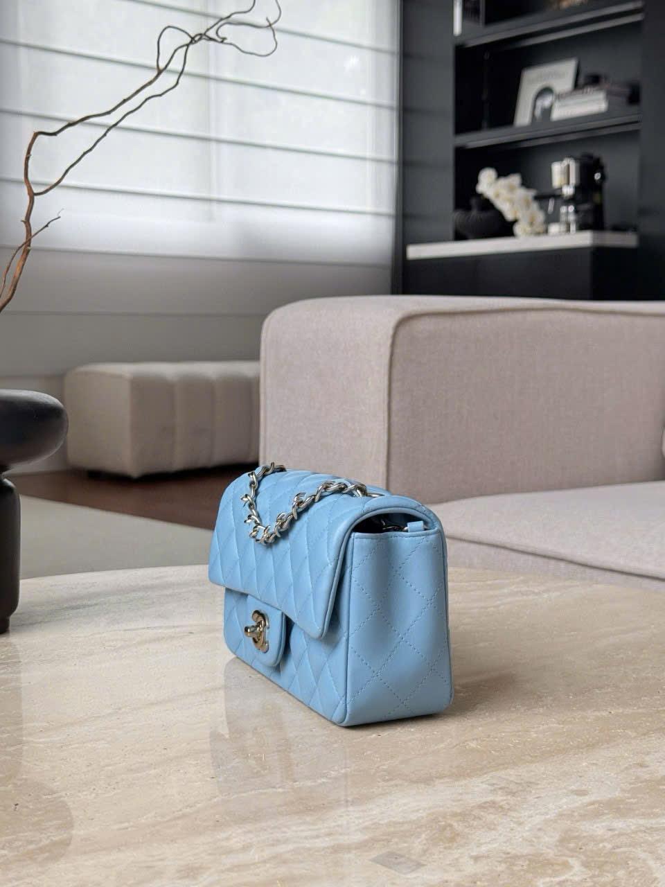 CHANEL CLASSIC MINI RECTANGULAR – LAMBSKIN – DENIM BLUE – TĐ