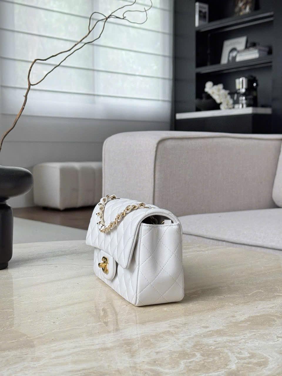 CHANEL CLASSIC MINI RECTANGULAR – LAMBSKIN – WHITE – TĐ
