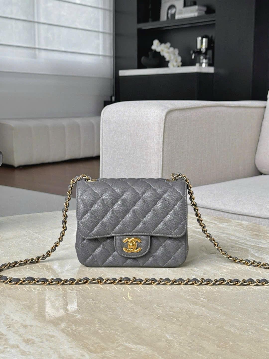 CHANEL CLASSIC MINI SQUARE – CAVIAR – DARK GREY – TĐ