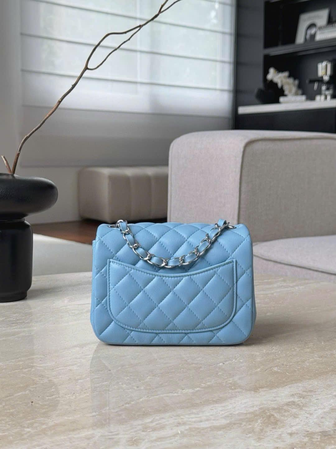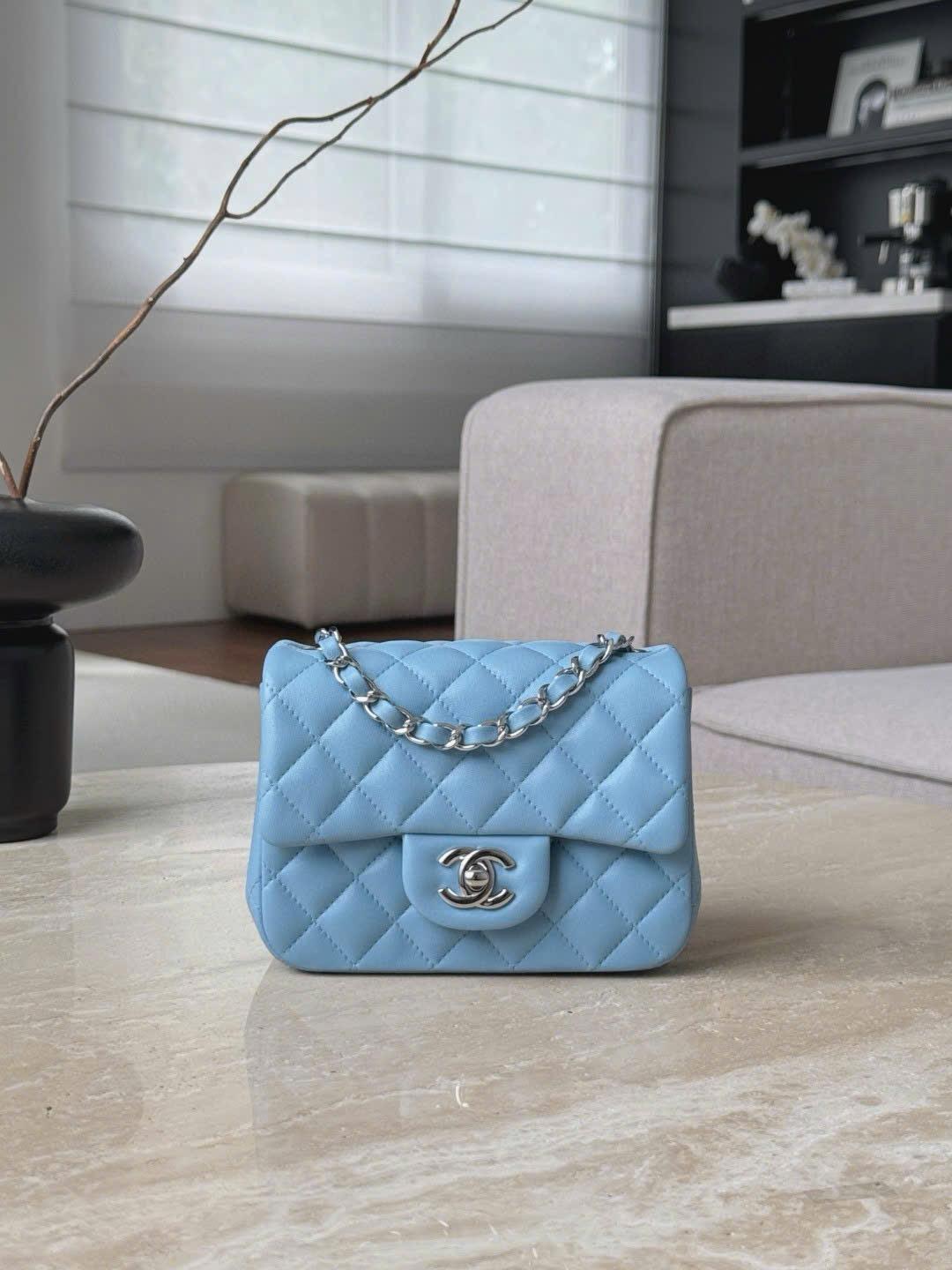 CHANEL CLASSIC MINI SQUARE – LAMBSKIN – COWBOY BLUE – TĐ