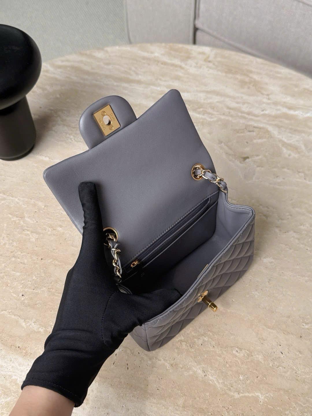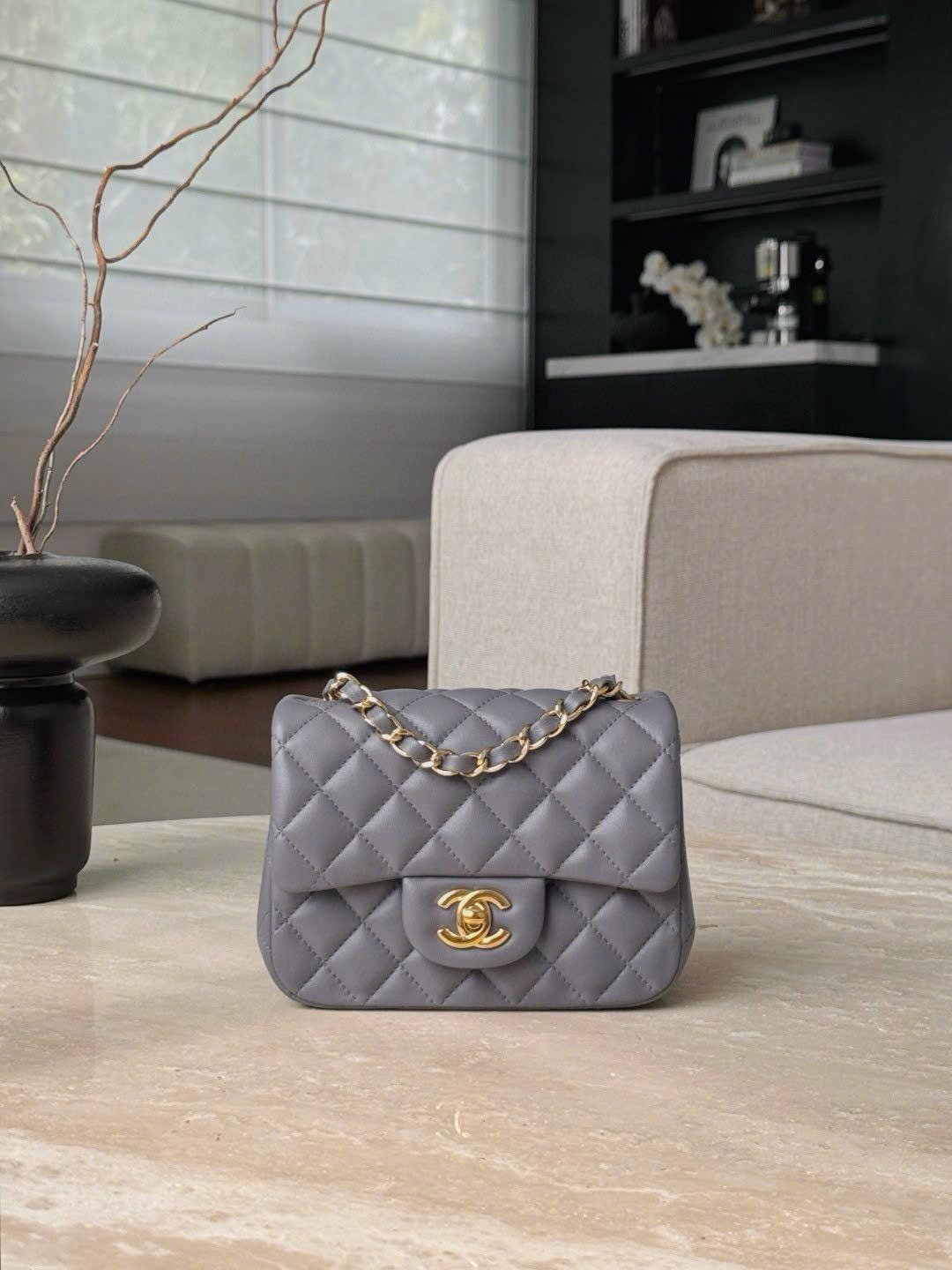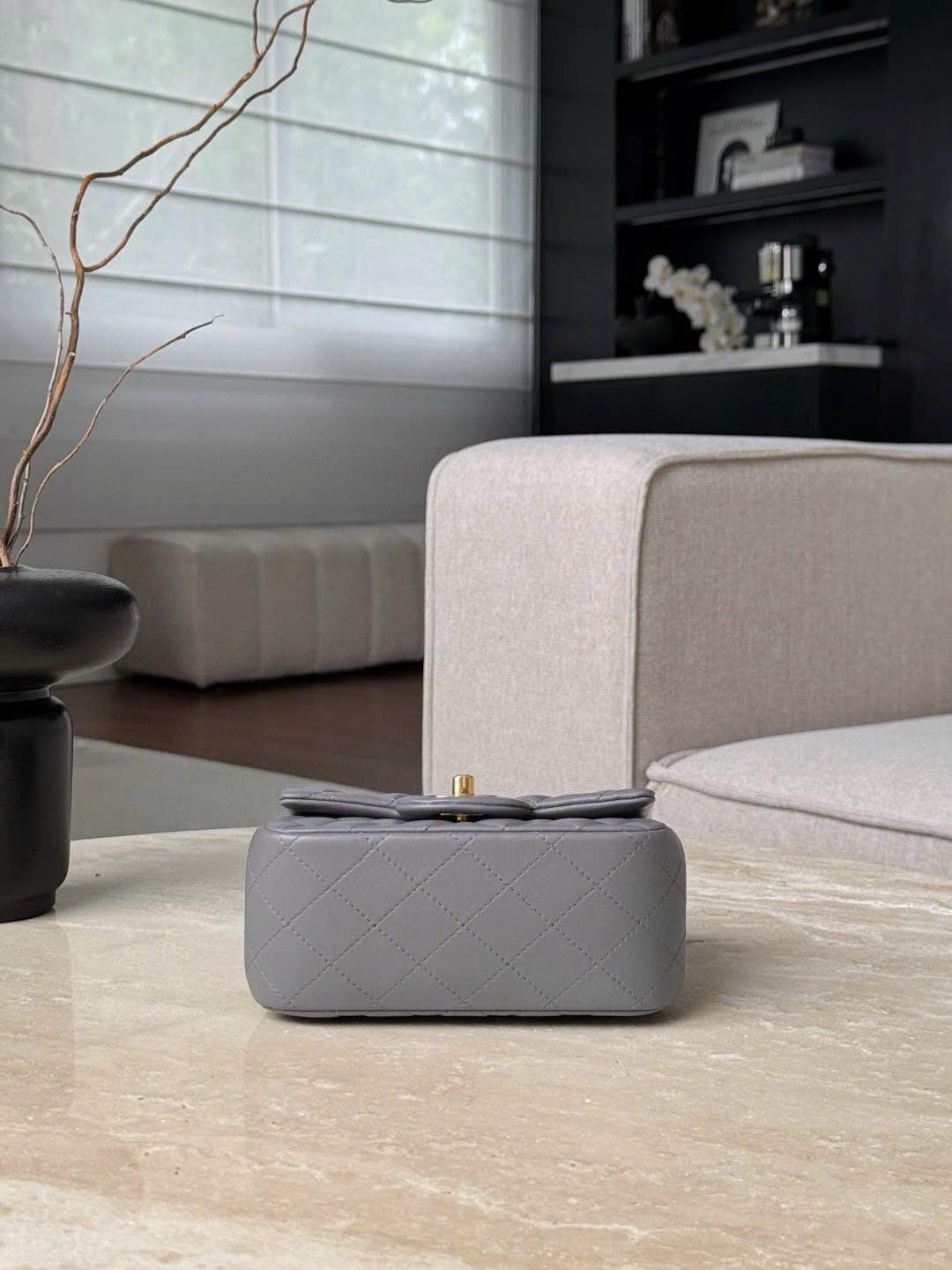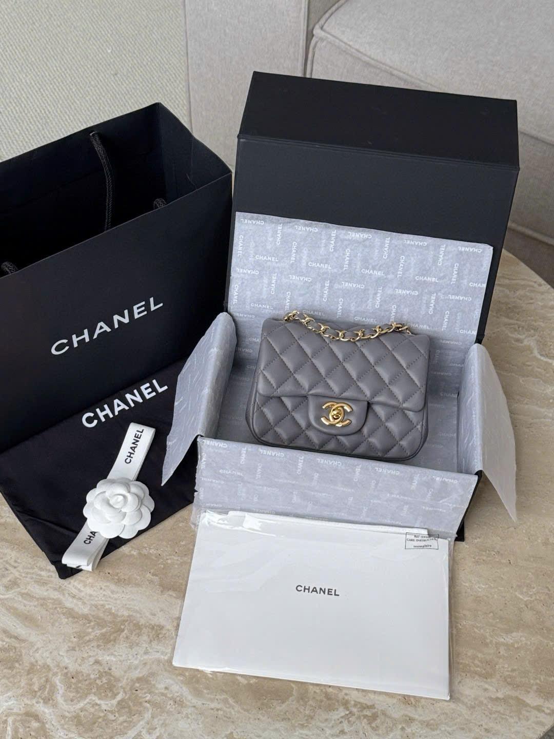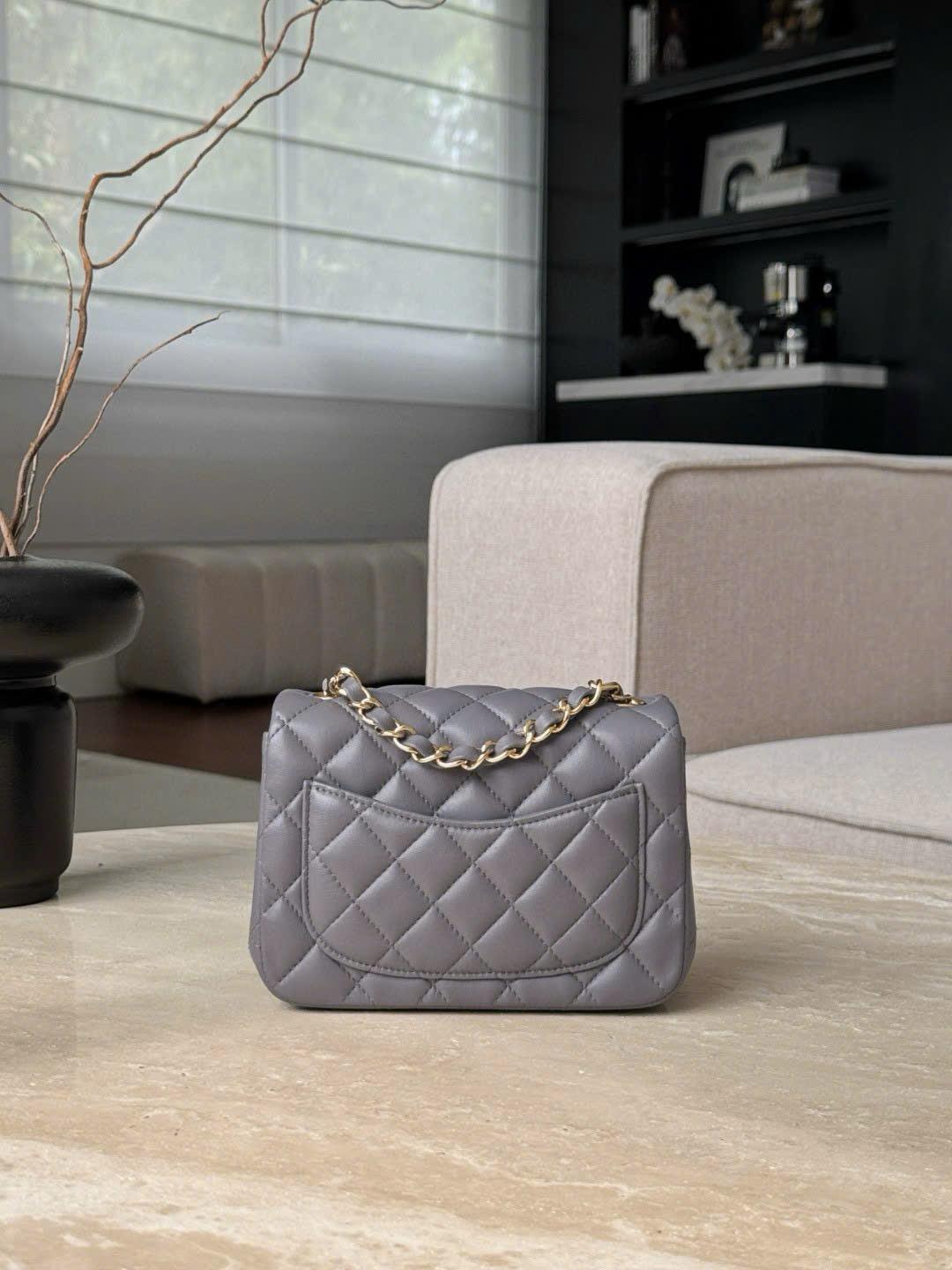 CHANEL CLASSIC MINI SQUARE – LAMBSKIN – DARK GREY – TĐ