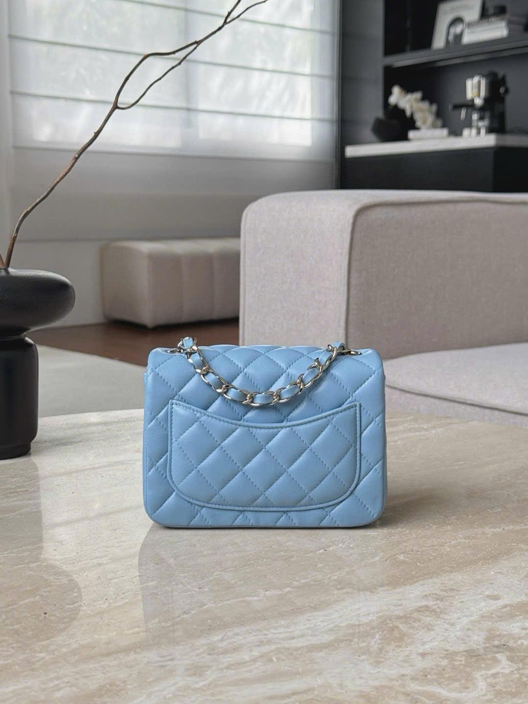 CHANEL CLASSIC MINI SQUARE – LAMBSKIN – DENIM BLUE – TĐ