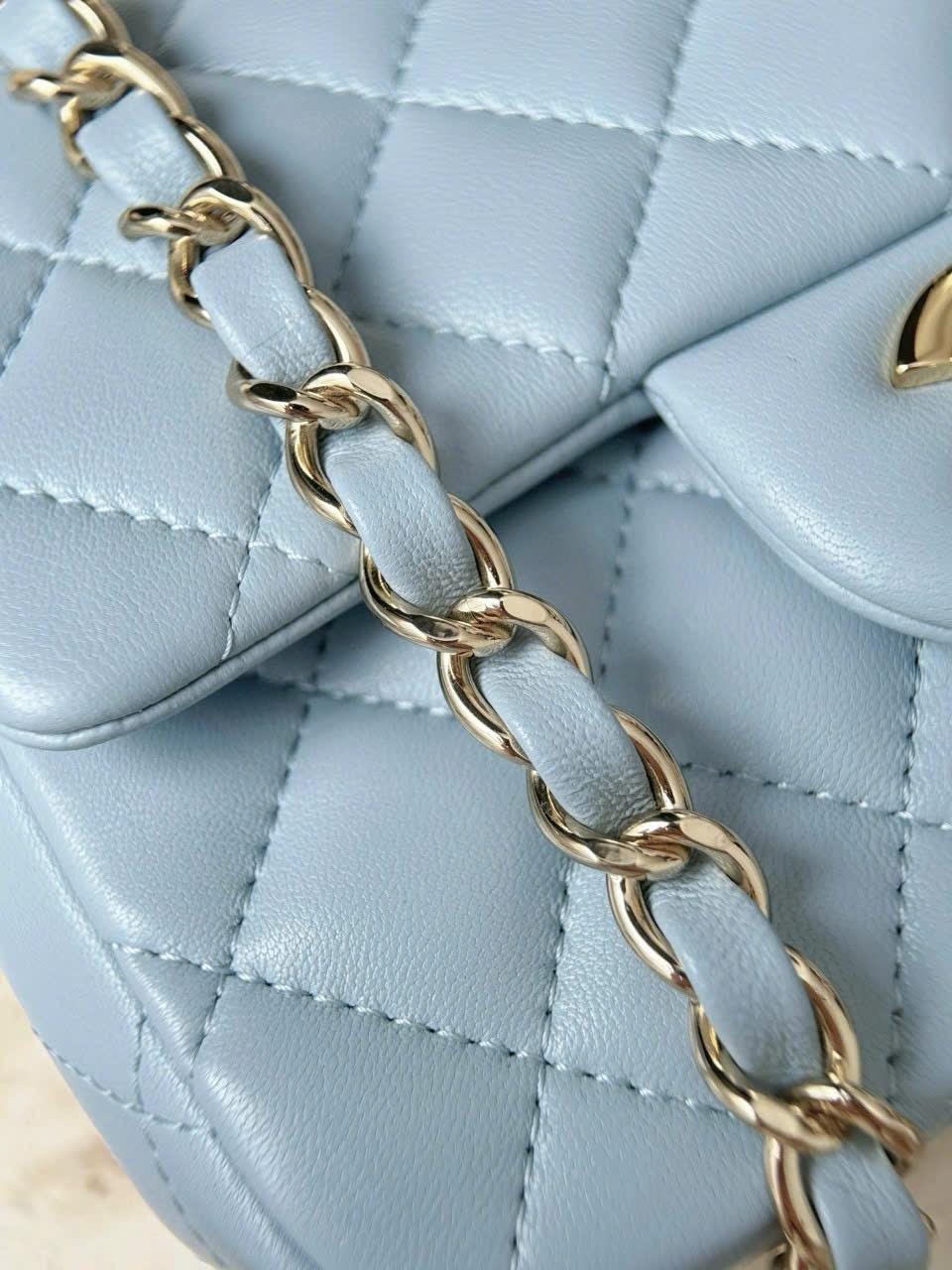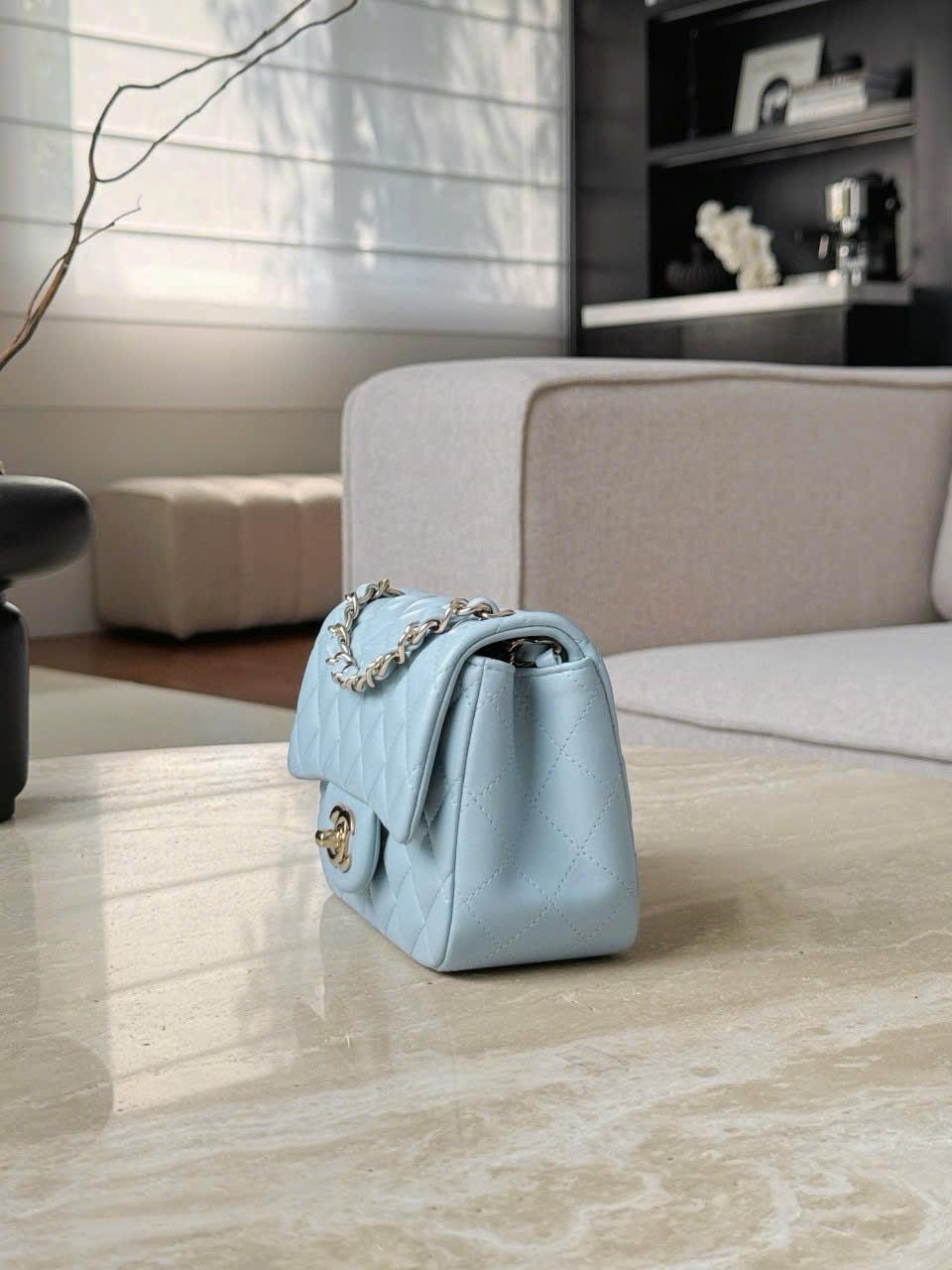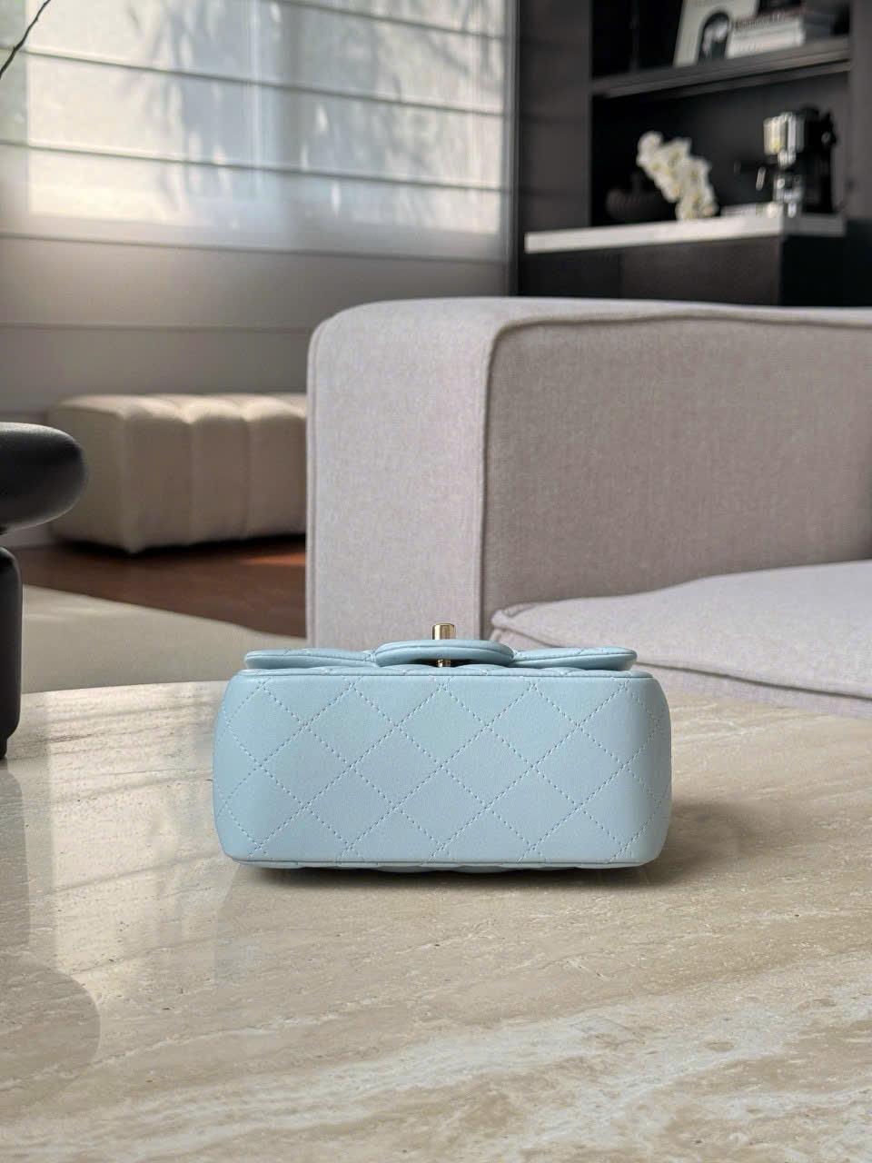 CHANEL CLASSIC MINI SQUARE – LAMBSKIN – LIGHT BLUE – TĐ