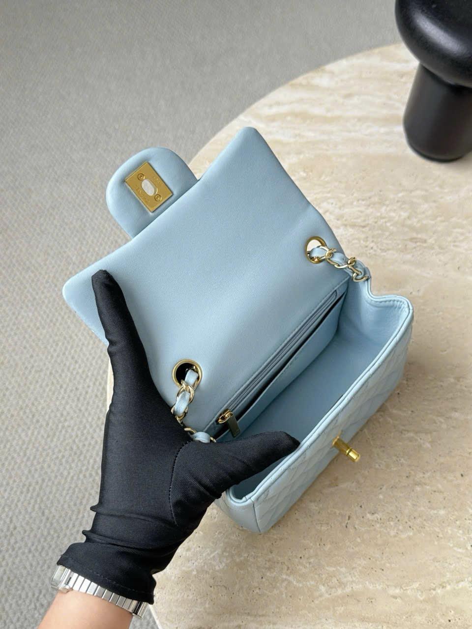 CHANEL CLASSIC MINI SQUARE – LAMBSKIN – LIGHT BLUE – TĐ