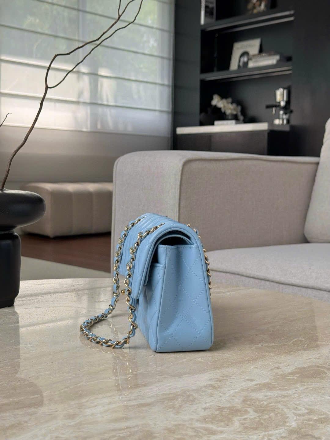 CHANEL CLASSIC SMALL – LAMBSKIN – BLUE – TĐ