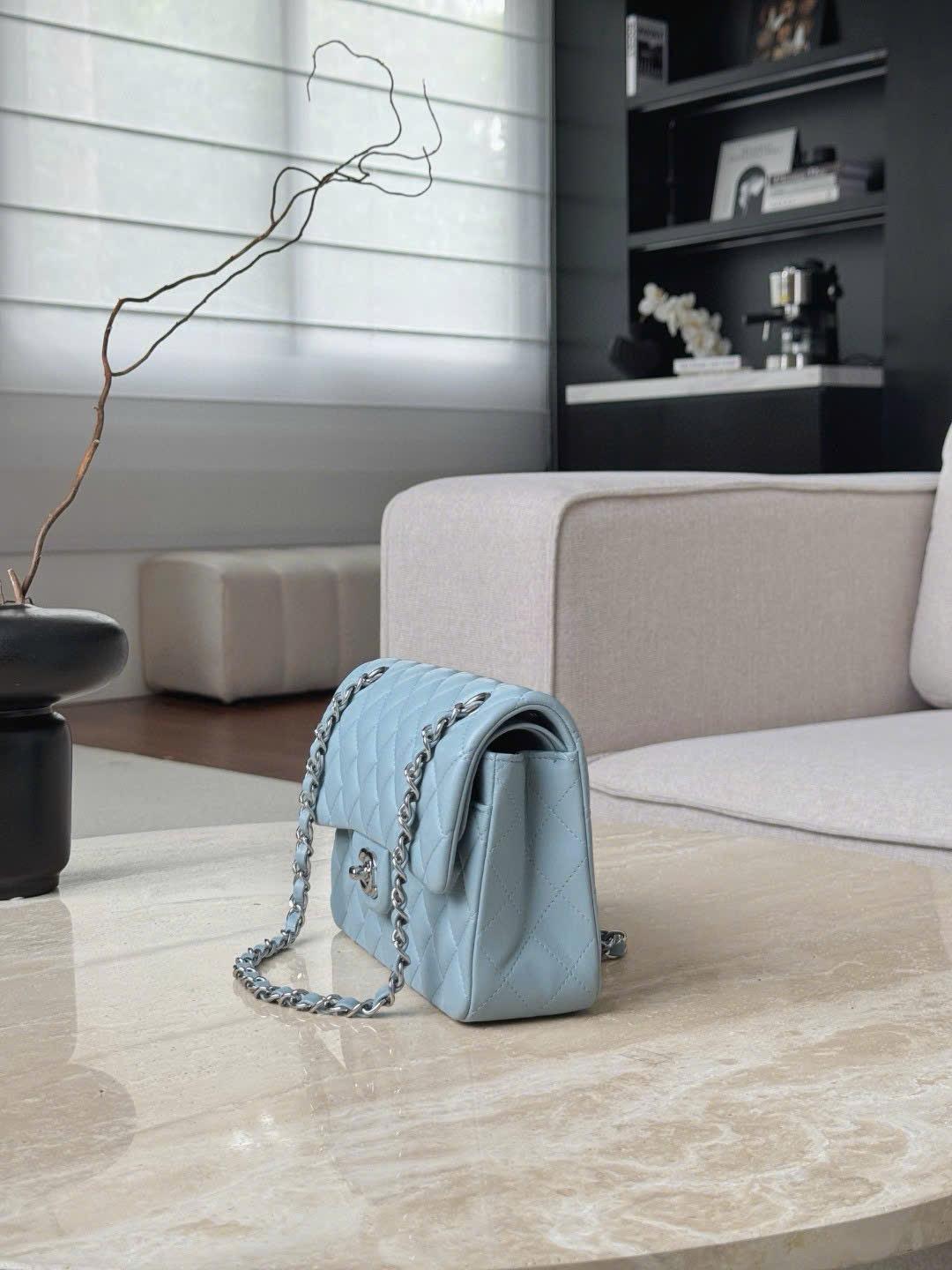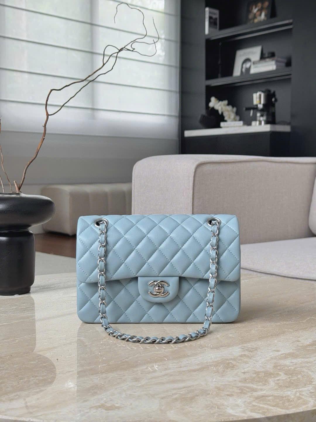CHANEL CLASSIC SMALL – LAMBSKIN – LIGHT BLUE – TĐ
