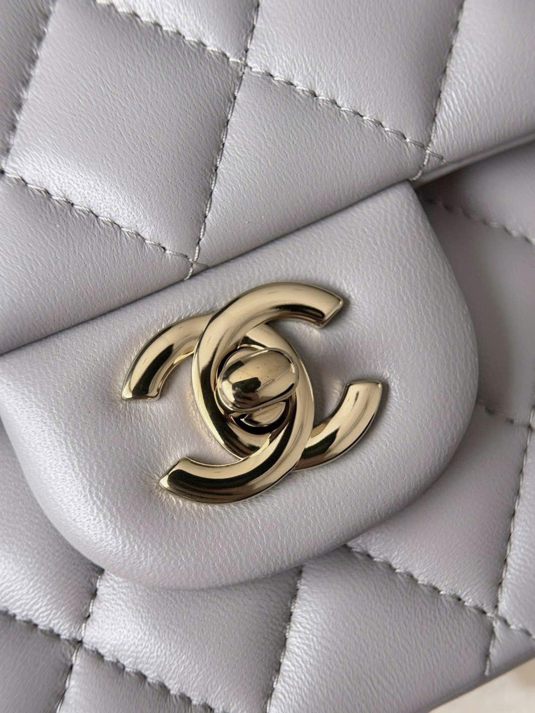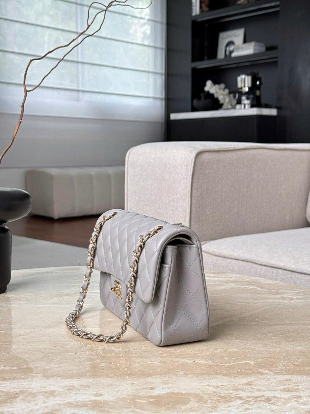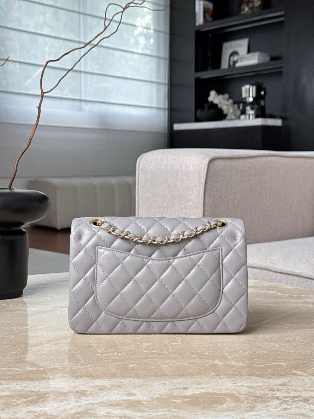 CHANEL CLASSIC SMALL – LAMBSKIN – LIGHT GREY – TĐ