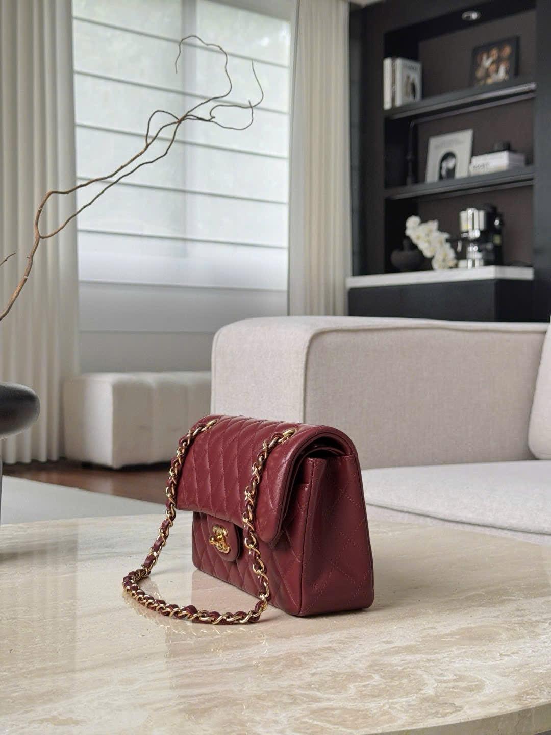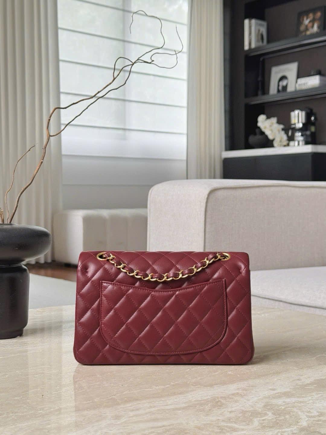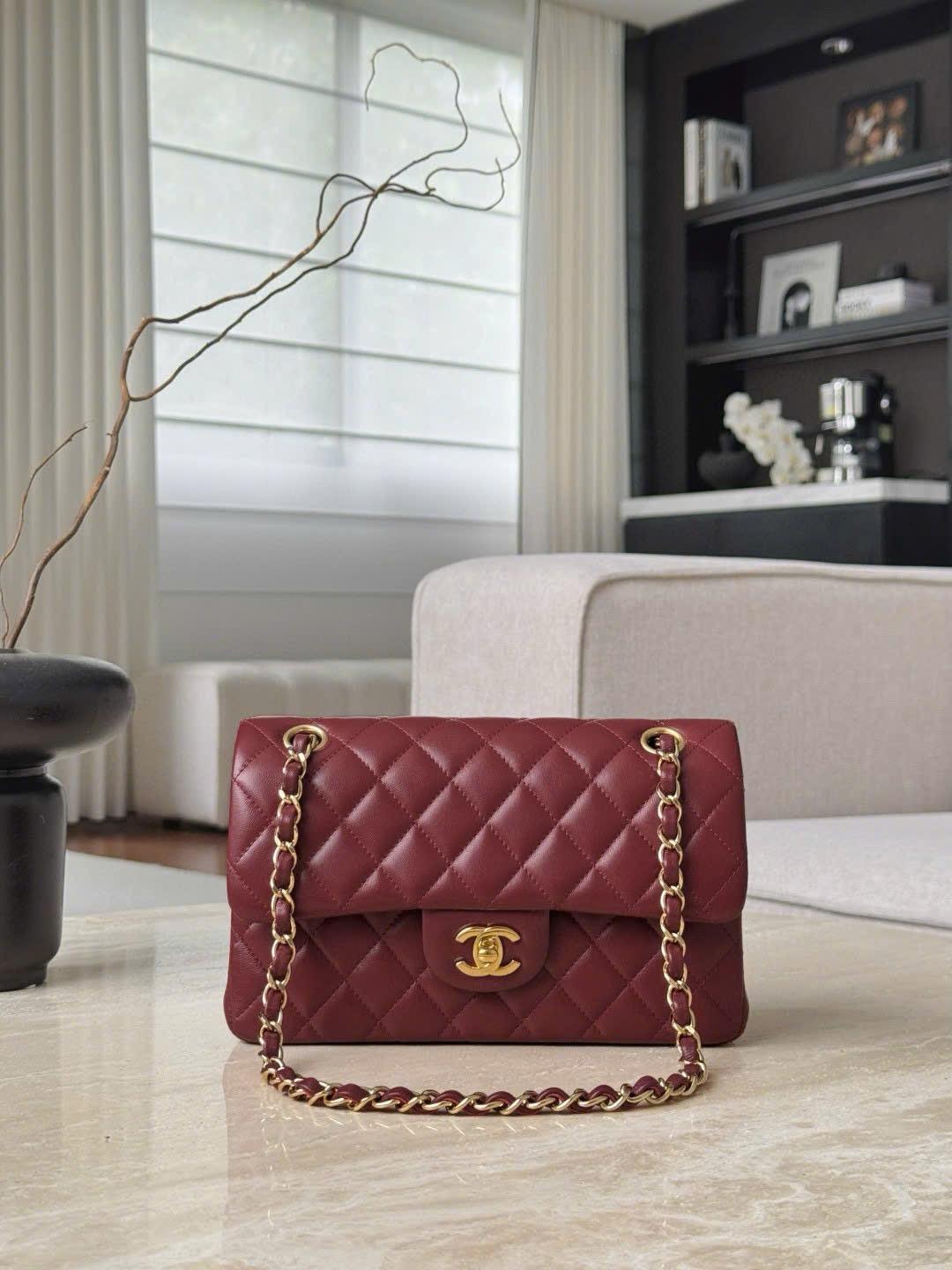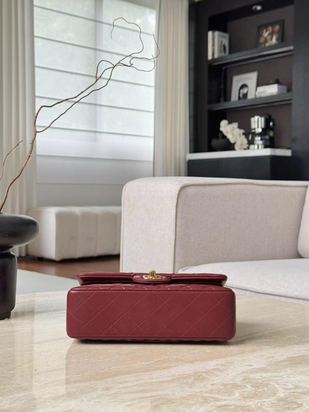CHANEL CLASSIC SMALL – LAMBSKIN – WINE RED – TĐ